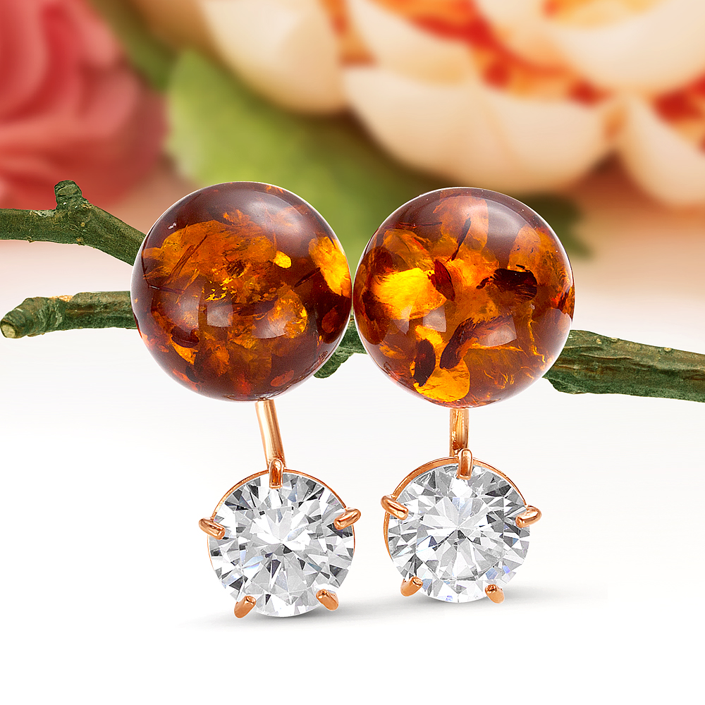 Серьги с красным янтарем