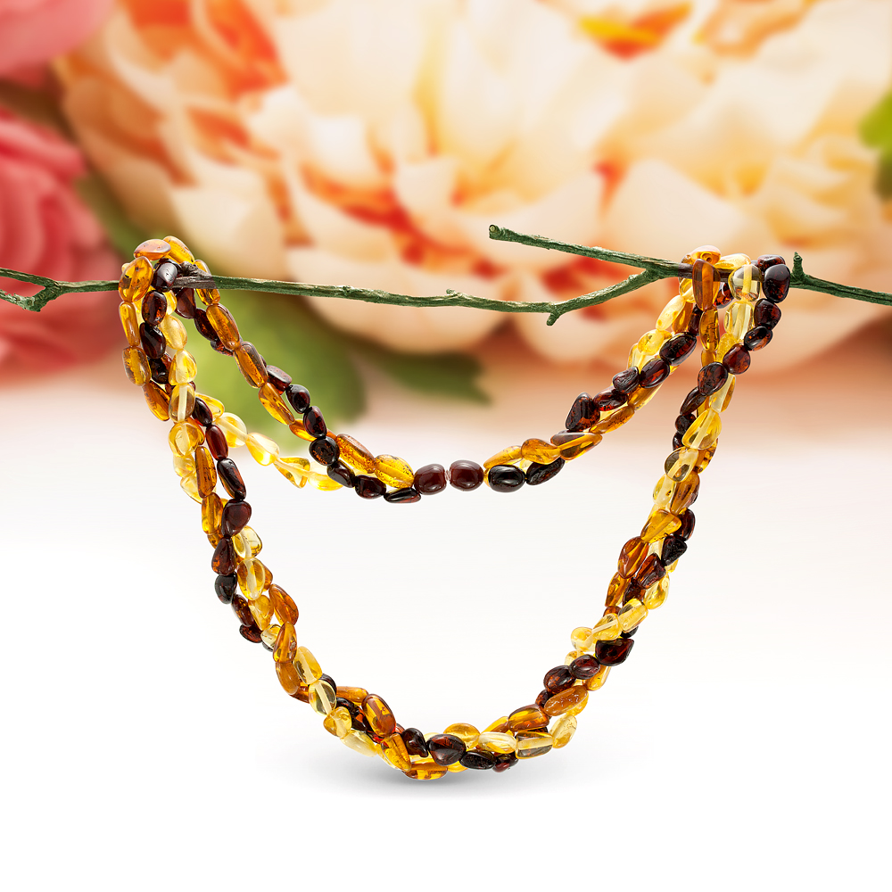 Ожерелье "микс" в 3 ряда из балтийского природного янтаря