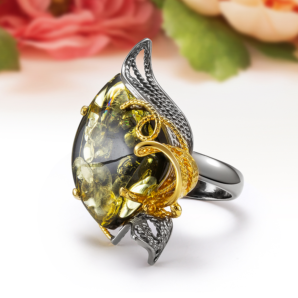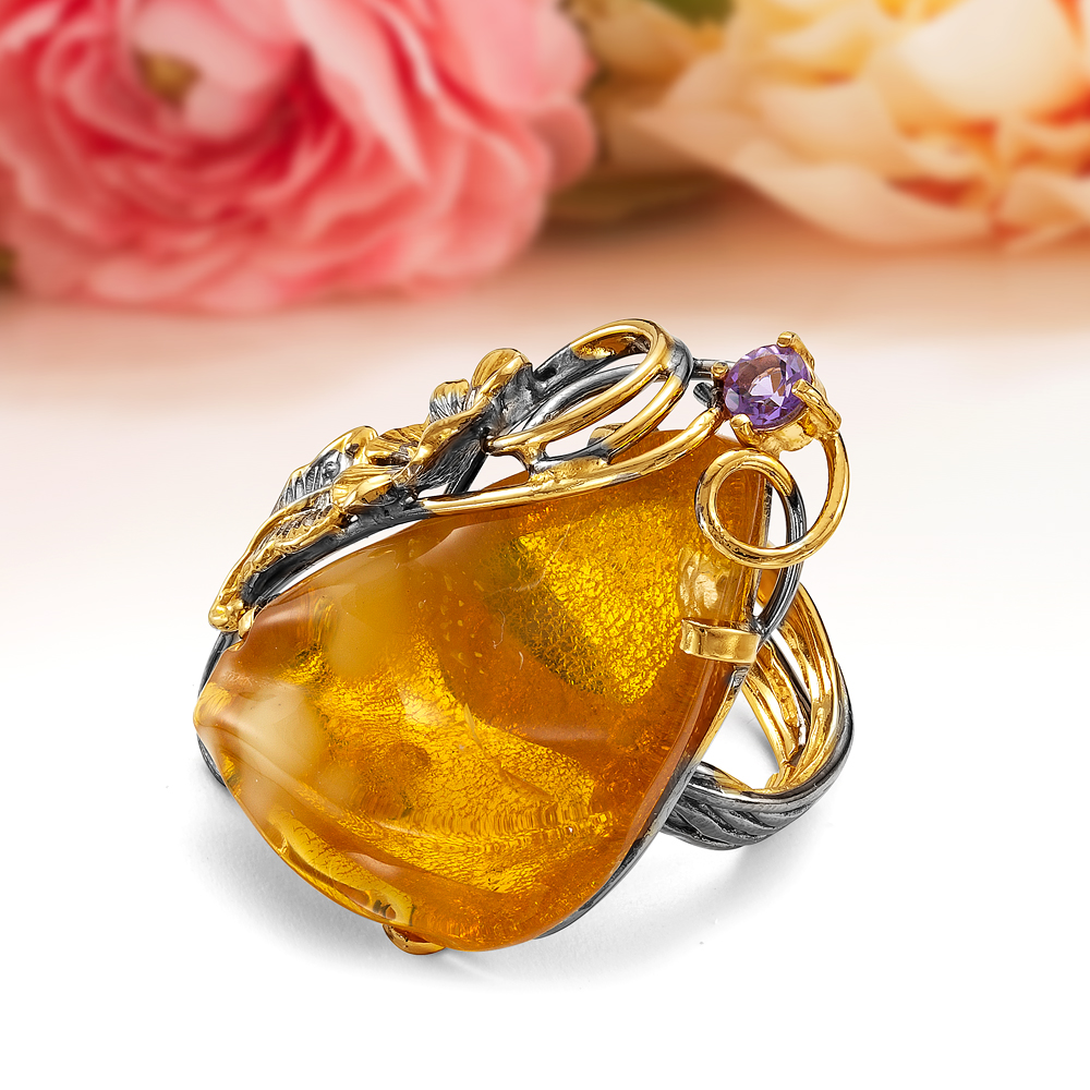 Кольца с королевским янтарем