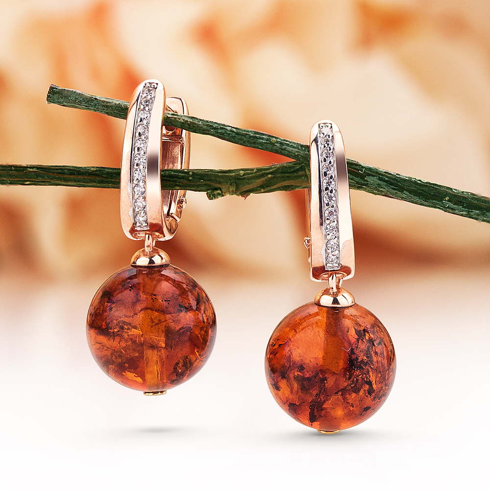 Серьги с красным янтарем
