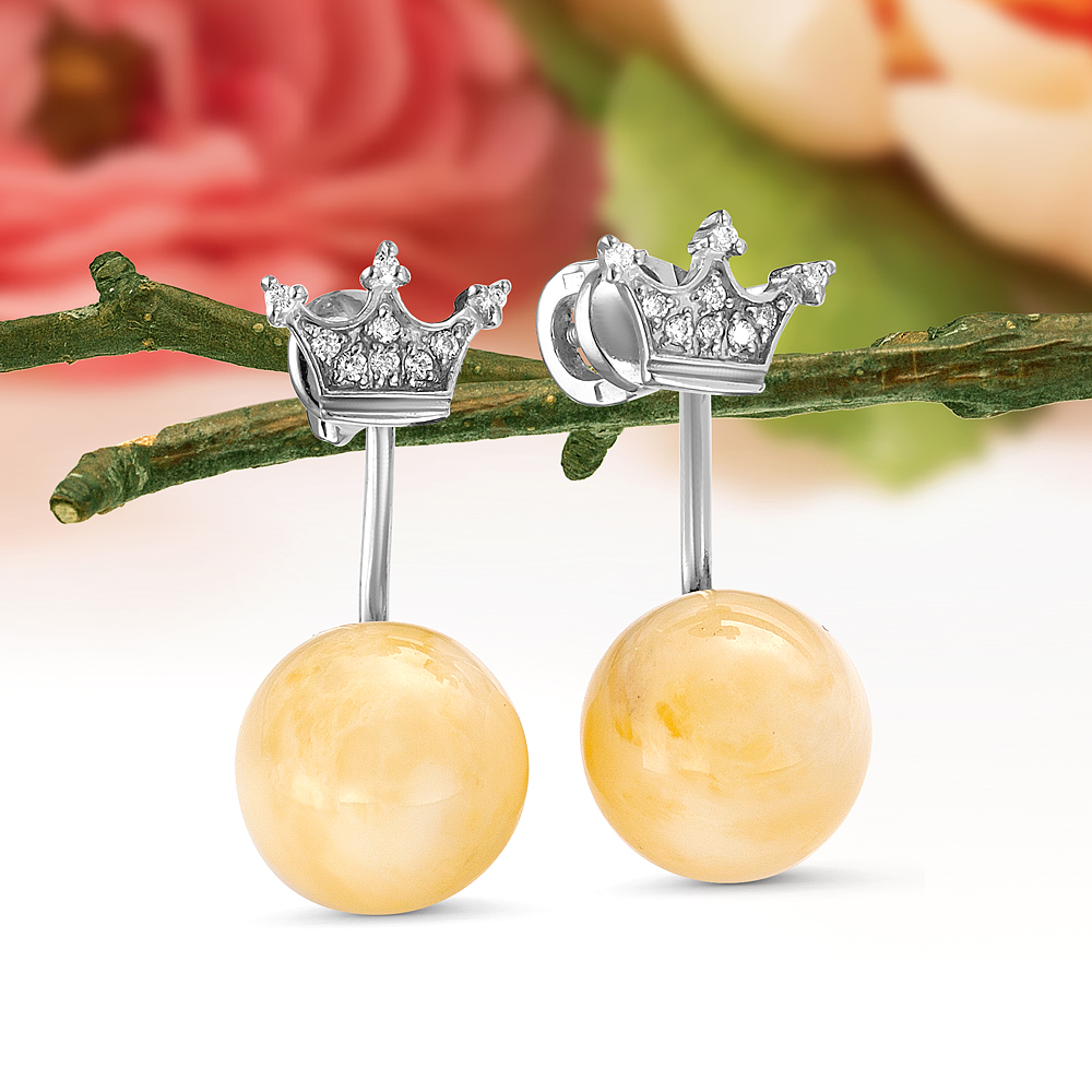 Серьги с белым янтарем