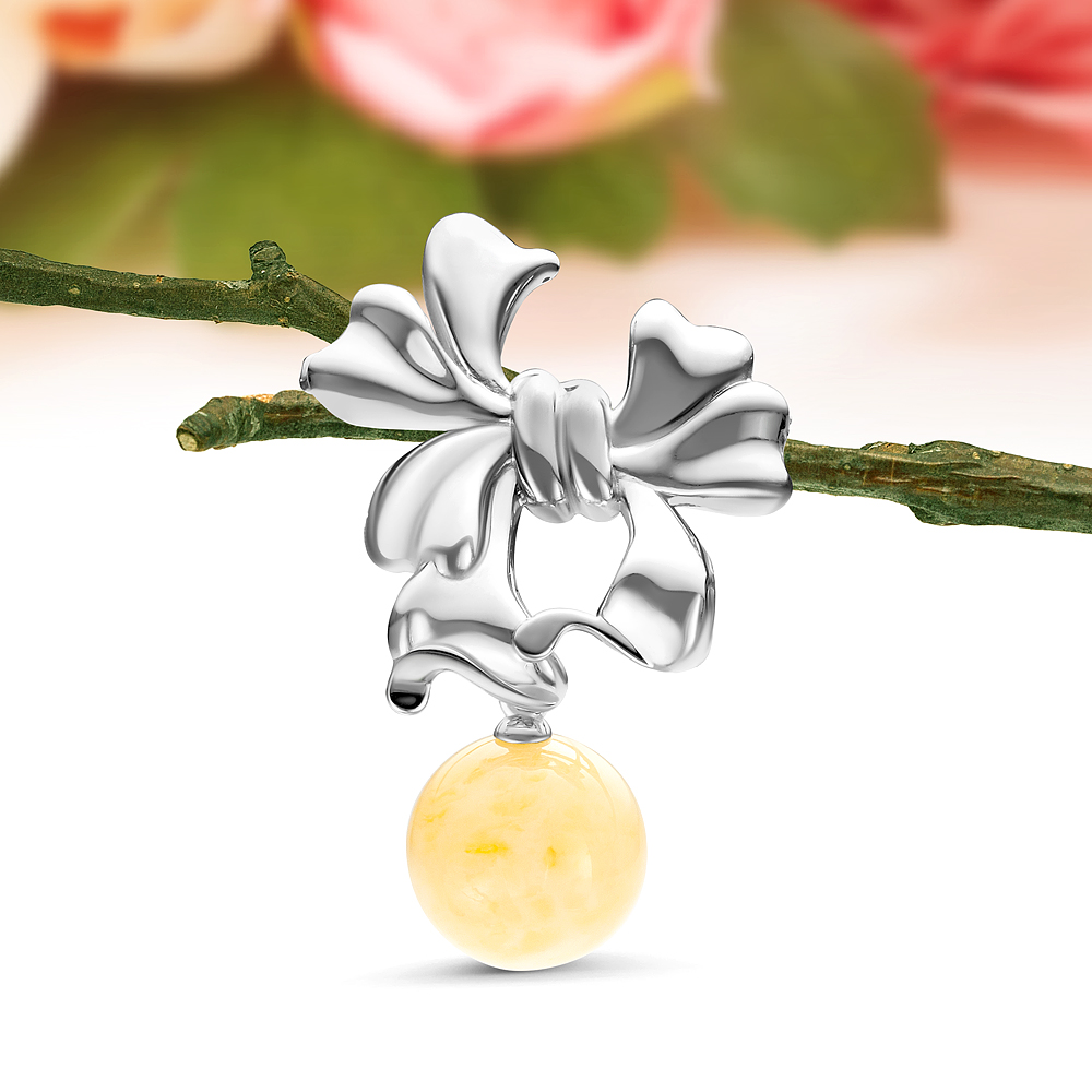 Брошь "Бант" из серебра 925 пробы с лимонным балтийским янтарем