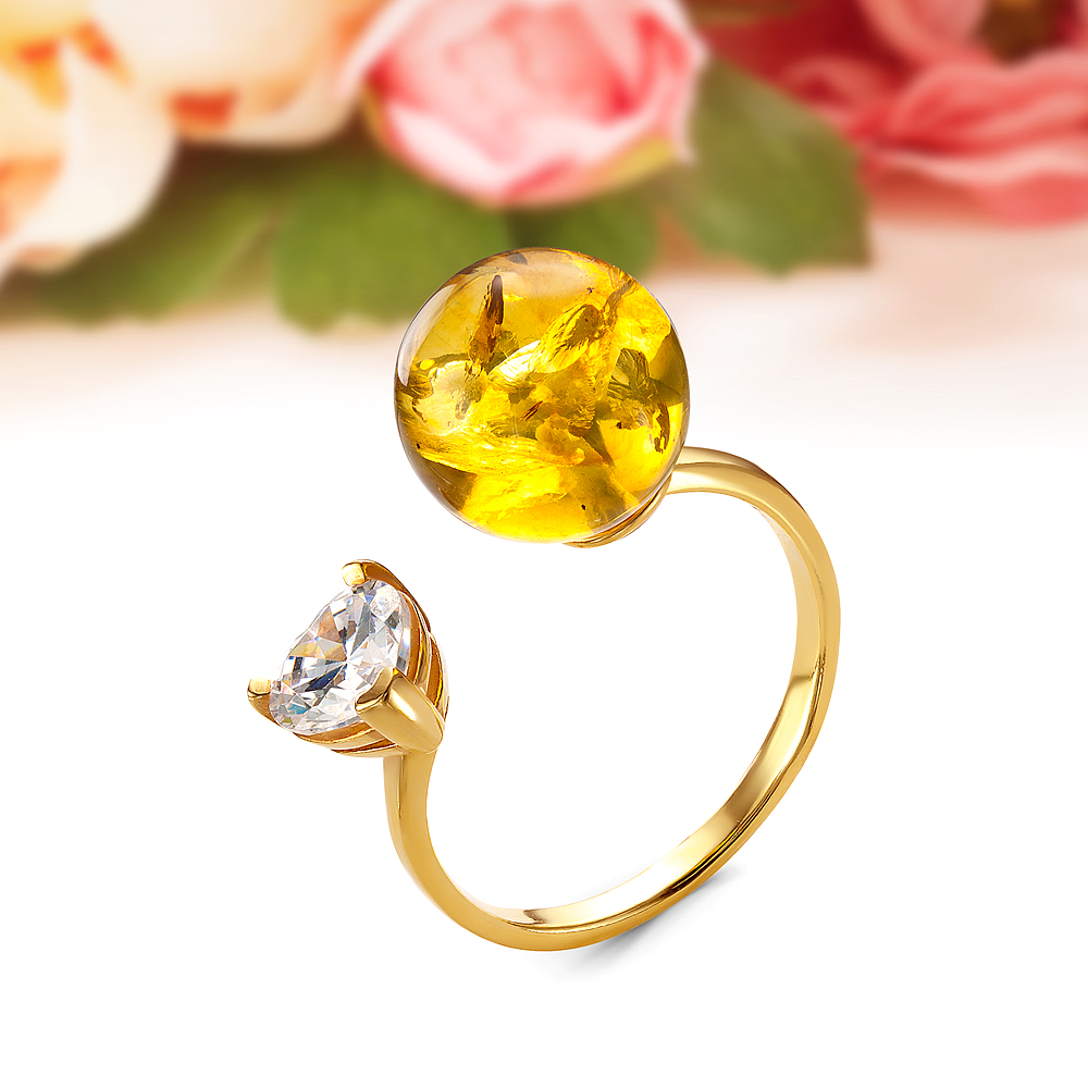 Кольцо "Диор" из серебра 925 пробы с золотистым балтийским янтарем