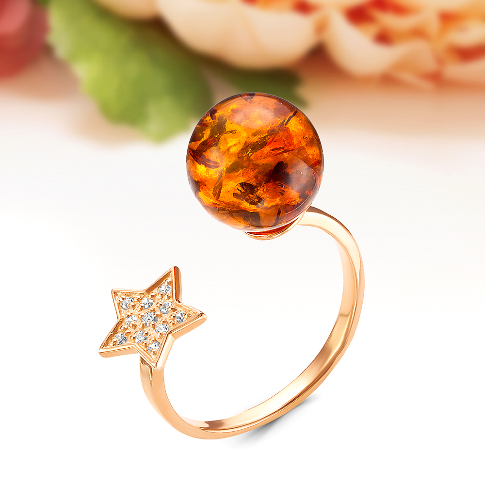 Кольцо "Диор" из серебра 925 пробы с коньячным балтийским янтарем