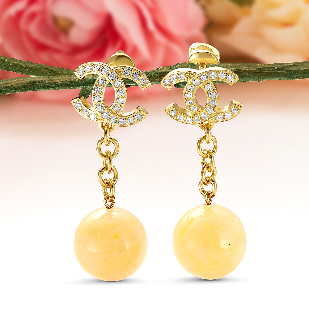 Серьги "Шанель" из серебра 925 пробы с лимонным балтийским янтарем