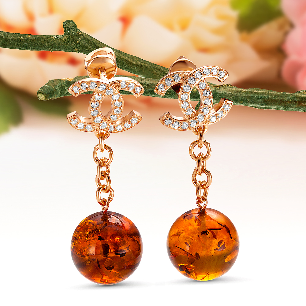 Серьги с королевским янтарем