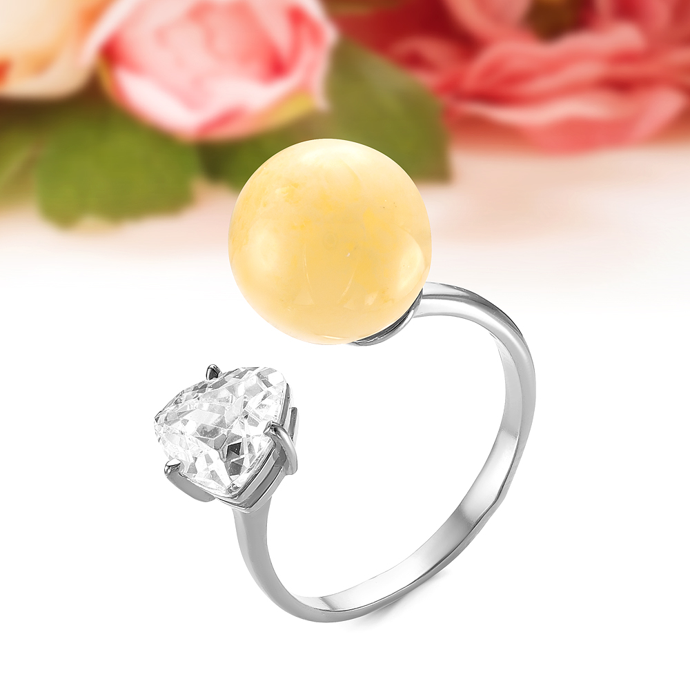 Кольца с белым янтарем