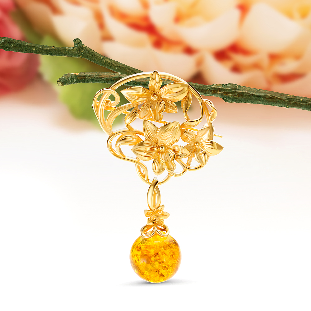 Золотые броши с янтарем