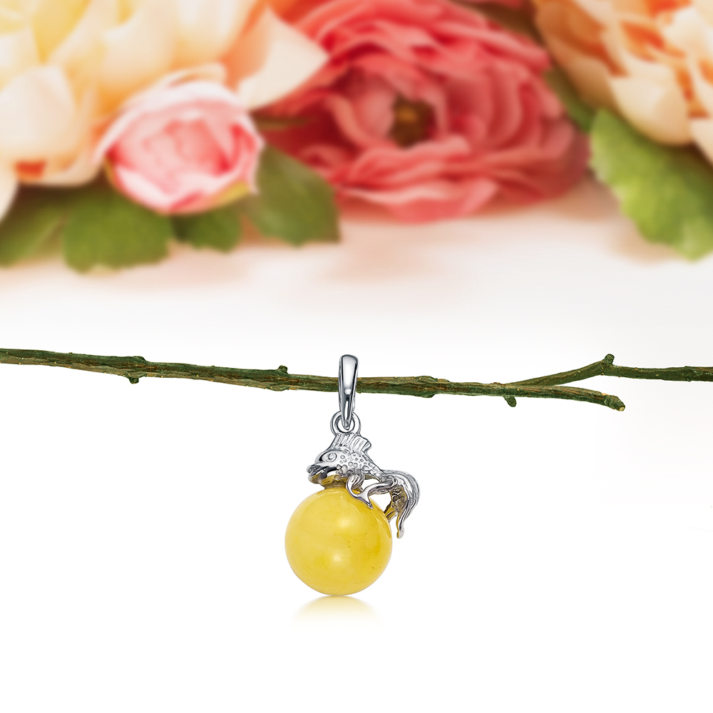 Кулон "Рыбка" из серебра с лимонным балтийским янтарем