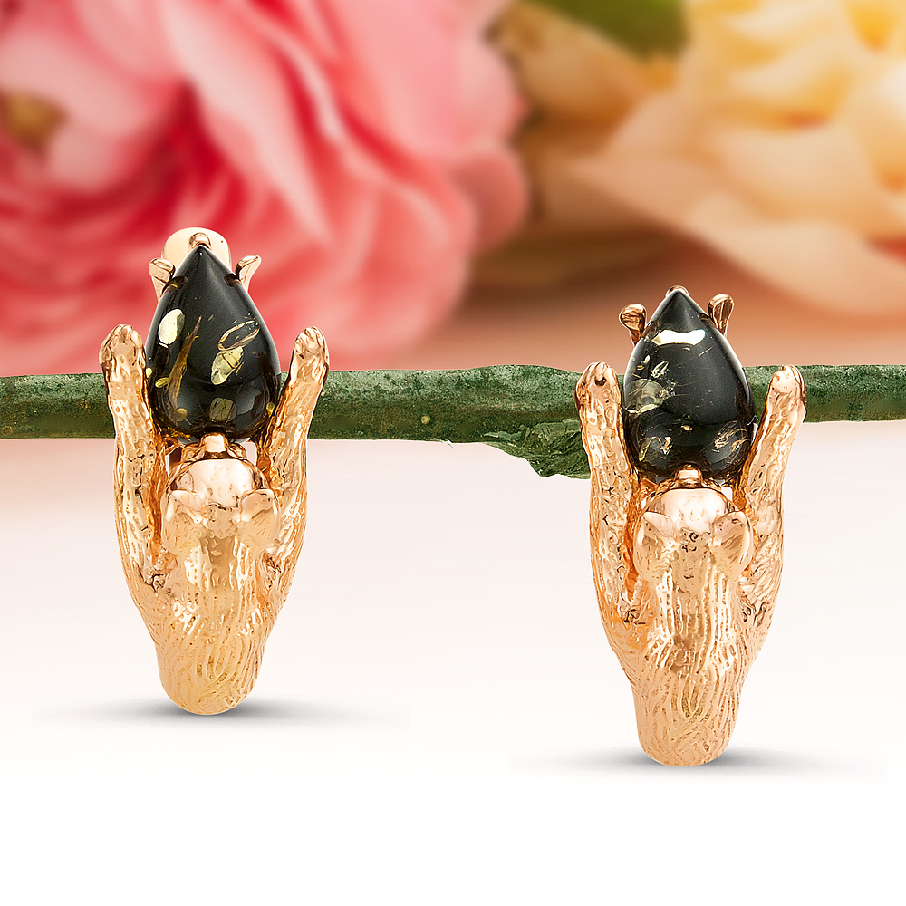 Золотые украшения с янтарем