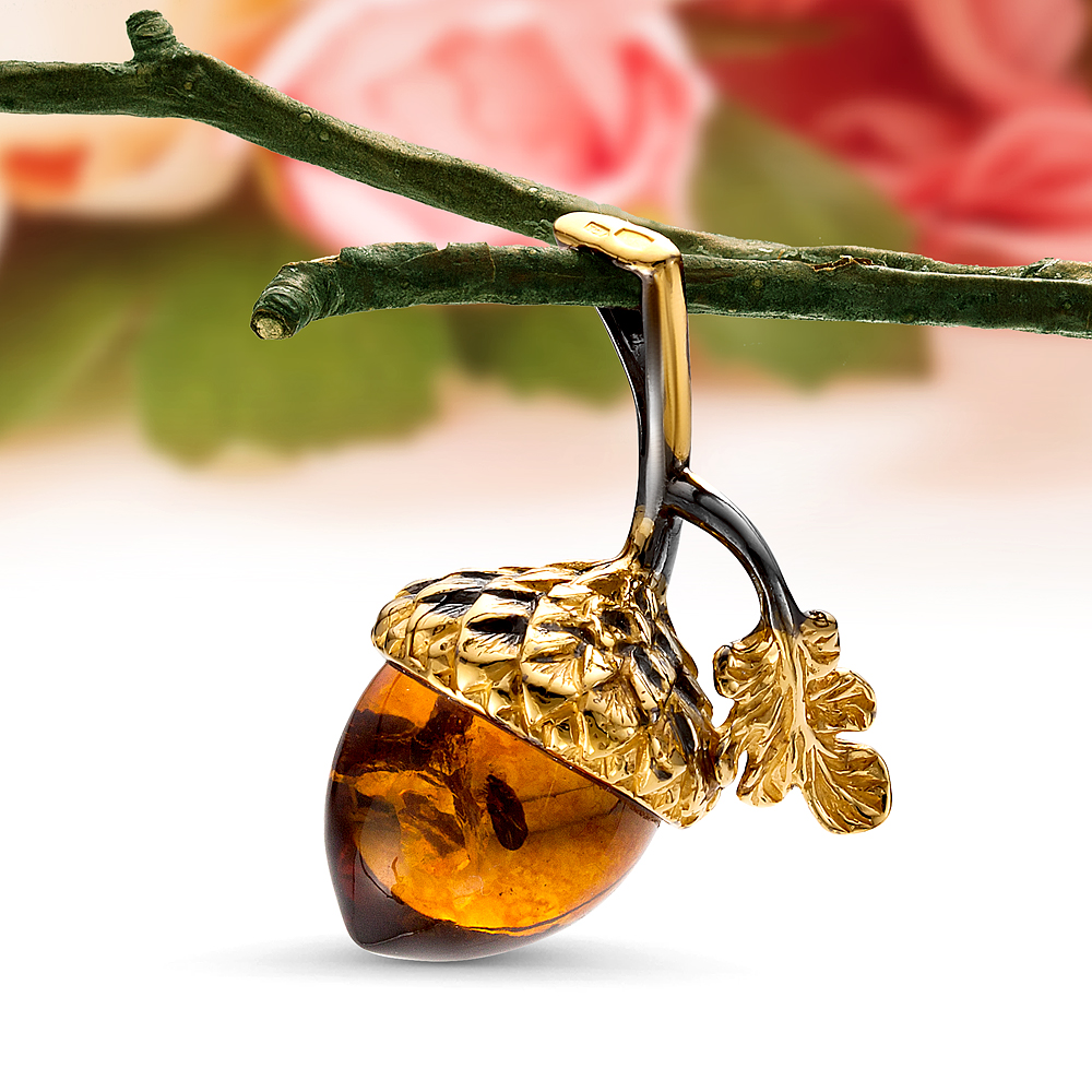 Кулон "Желудь" из серебра с балтийским янтарем