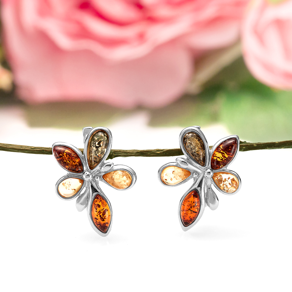 Серьги из серебра 925 пробы с природным балтийским янтарем "микс"