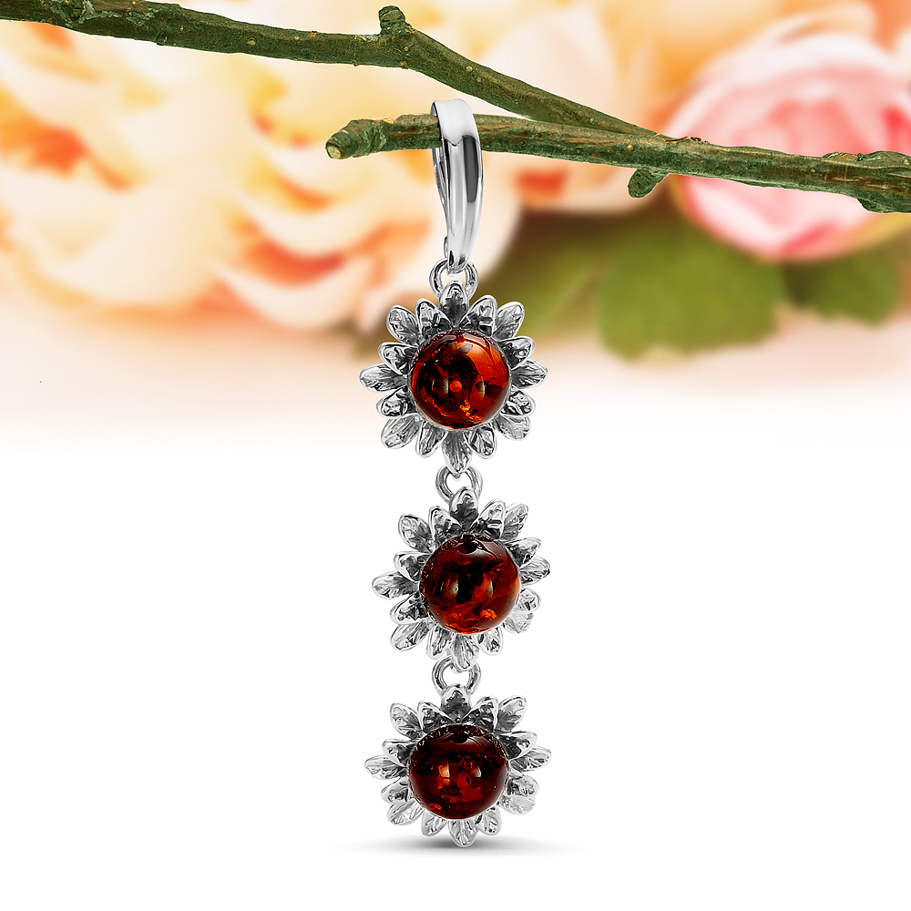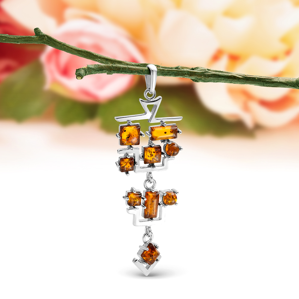Кулон "Кокетка" из серебра с коньячным балтийским янтарем