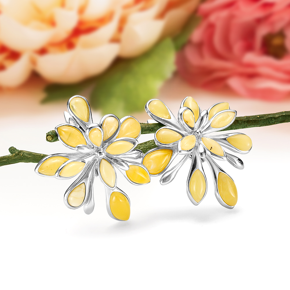 Кулон "Подсолнух" из серебра с лимонным балтийским янтарем