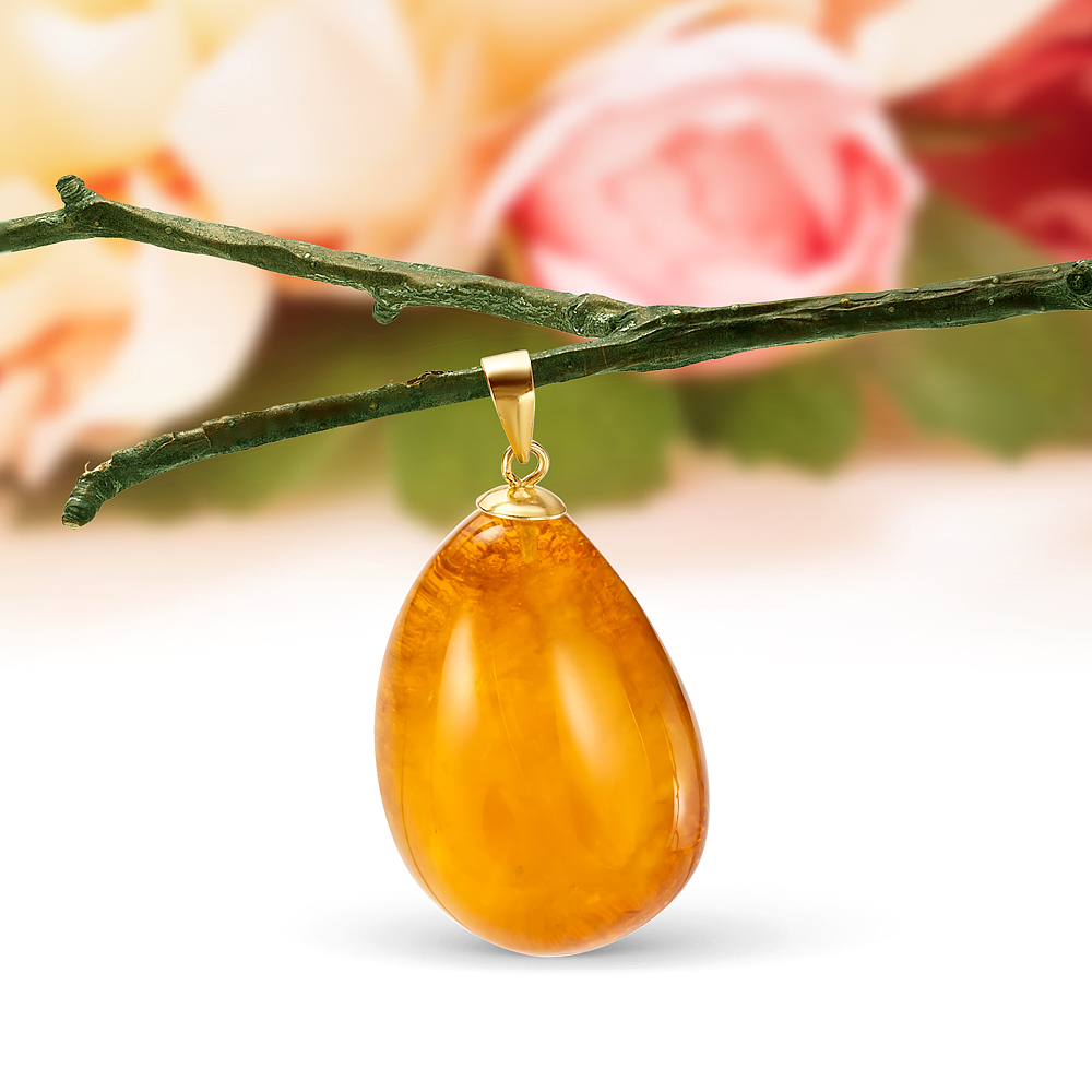 Кулон из серебра 925 пробы с золотистым балтийским янтарем