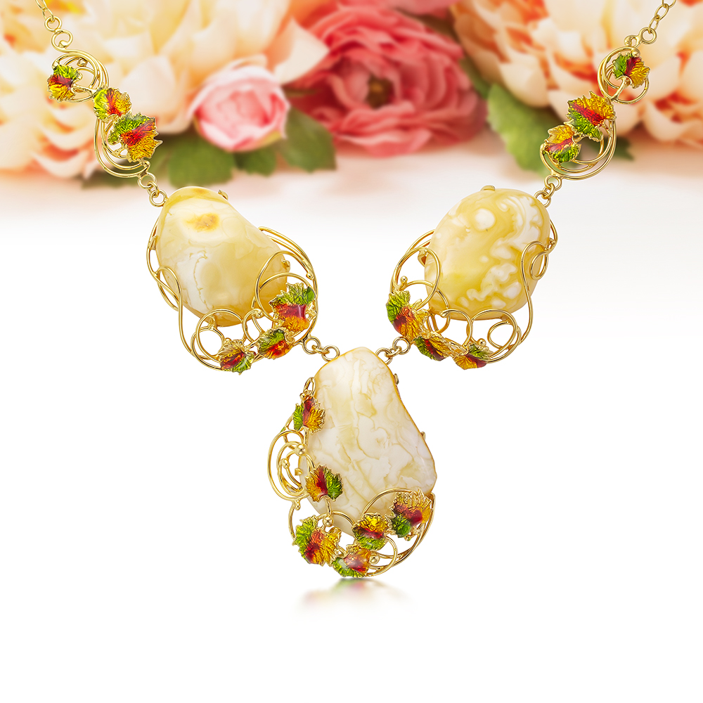Колье из серебра, украшенное Императорским балтийским янтарем