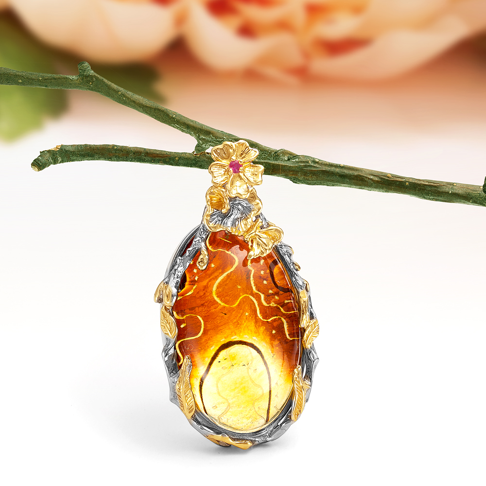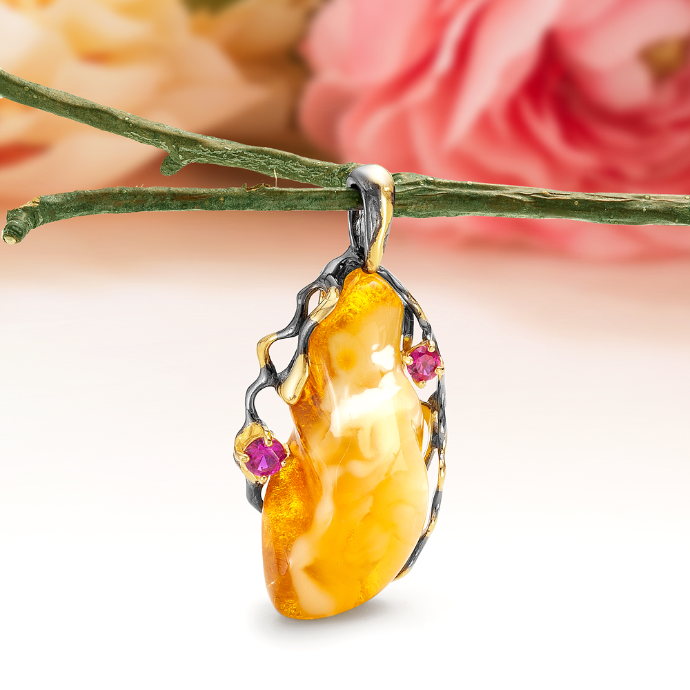 Кулон "Весенняя сказка" из серебра с золотистым балтийским янтарем