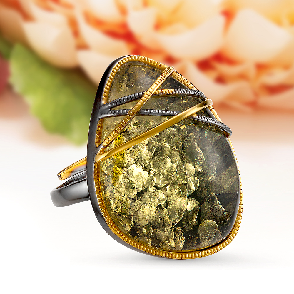 Кольца с зеленым янтарем