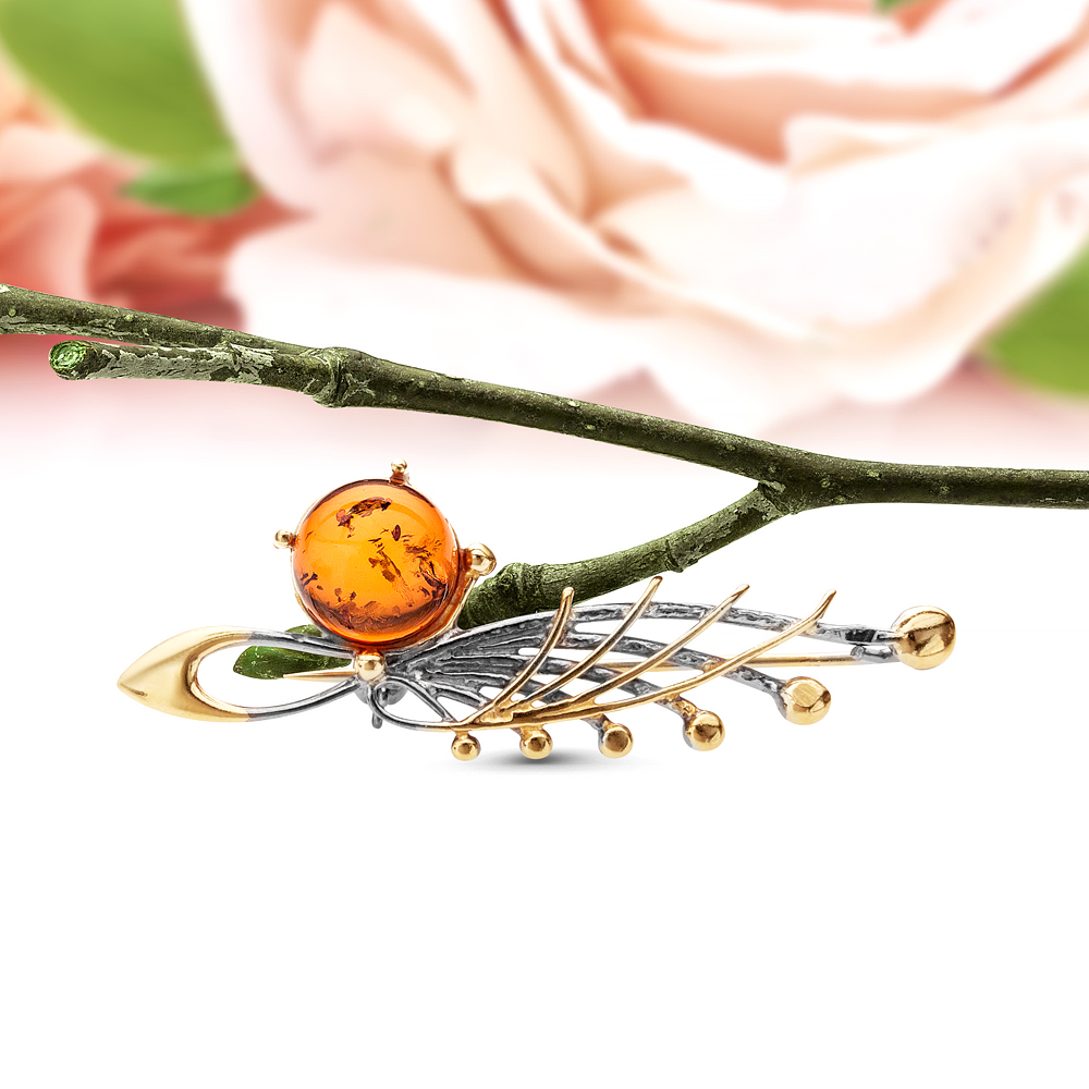 Серебряные броши с янтарем