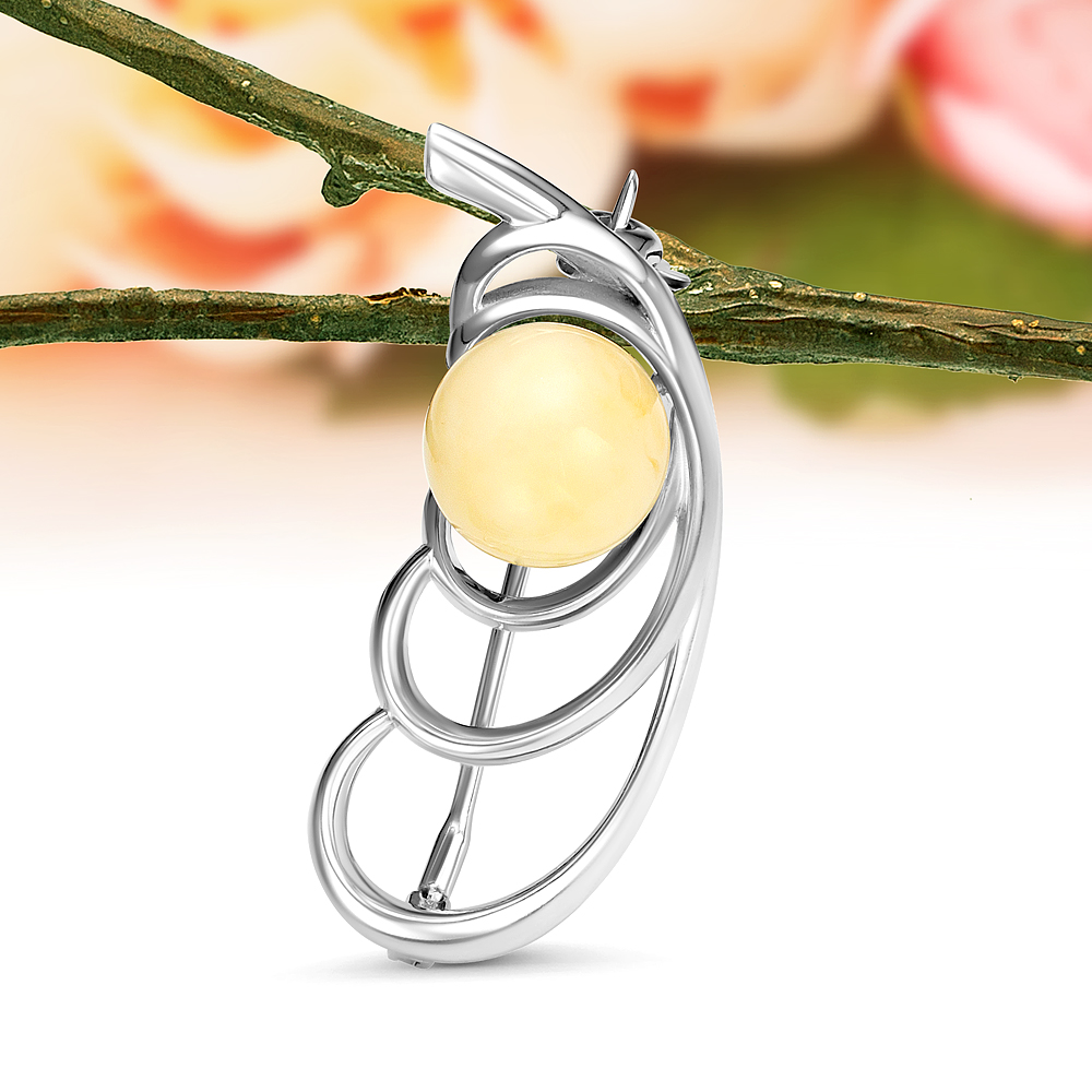 Брошь из серебра 925 пробы с лимонным природным балтийским янтарем