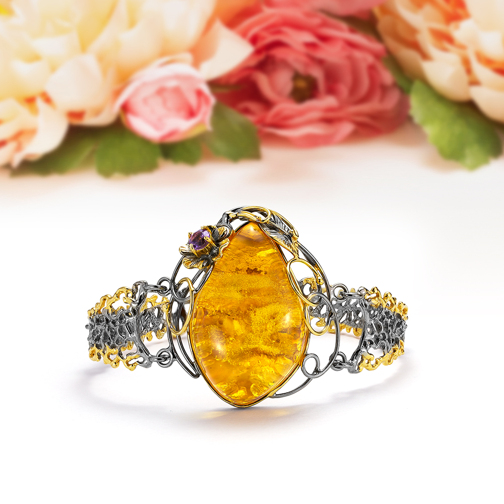 Серебряные браслеты с янтарем