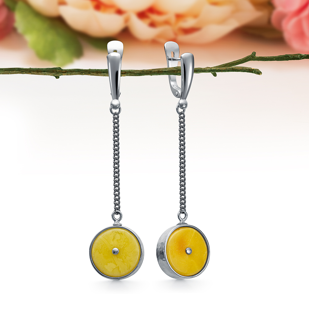 Серьги из серебра 925 пробы, украшенные лимонным балтийским янтарем