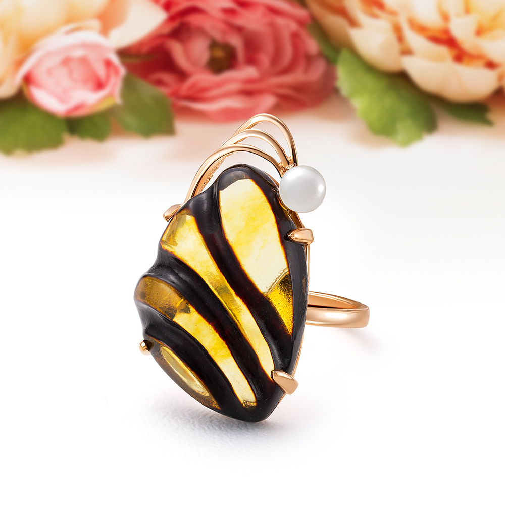 Кольца с королевским янтарем