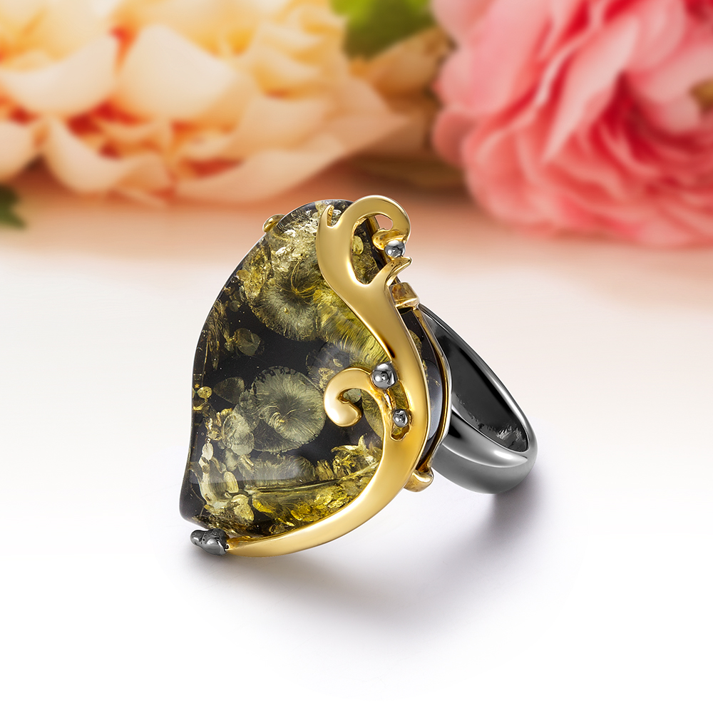 Кольца с зеленым янтарем
