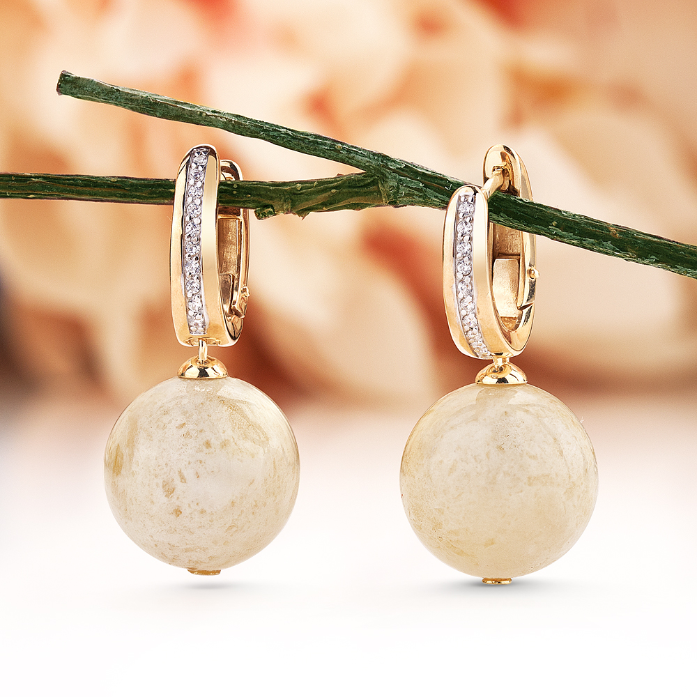 Серьги с белым янтарем