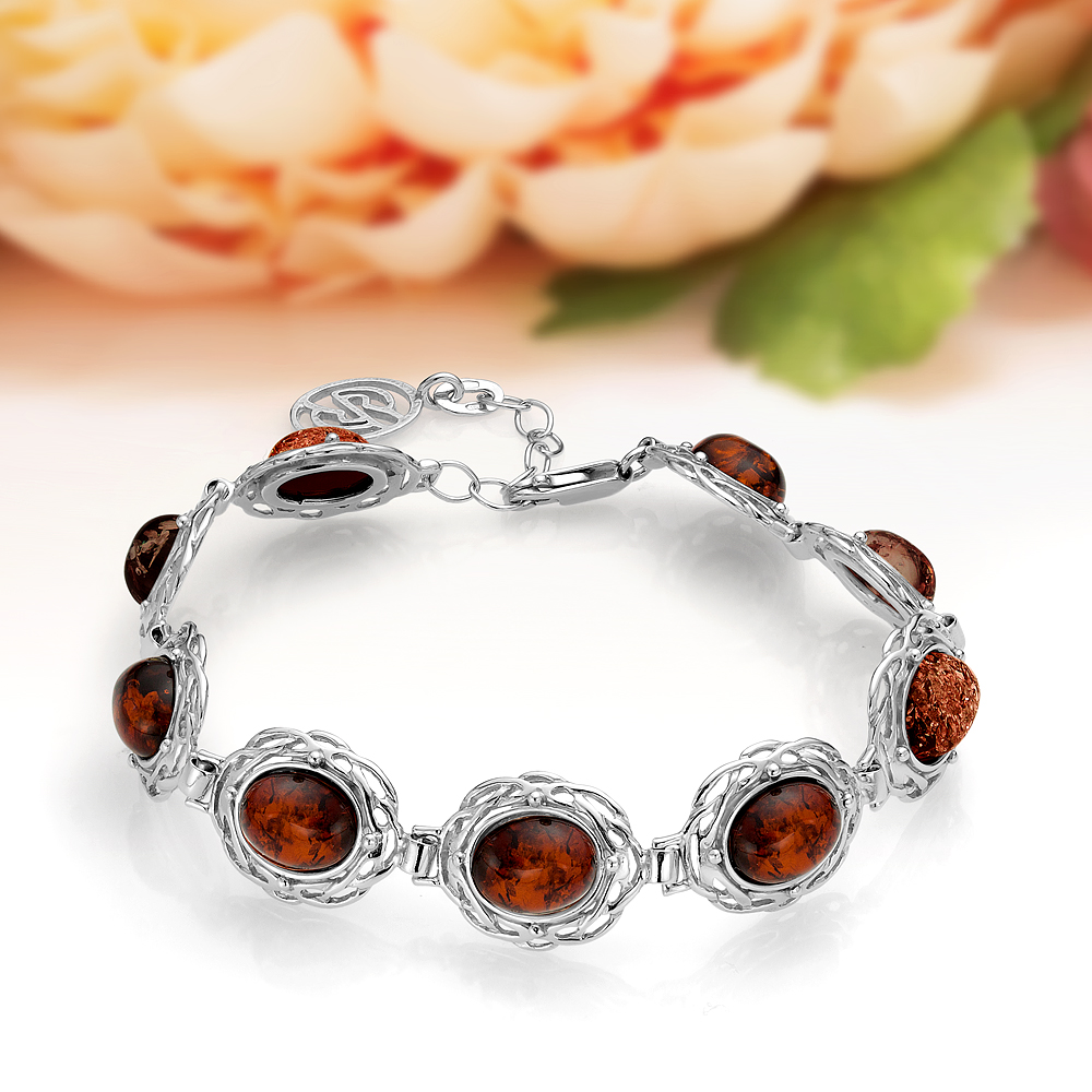 Браслет из серебра 925 пробы с коньячным балтийским янтарем