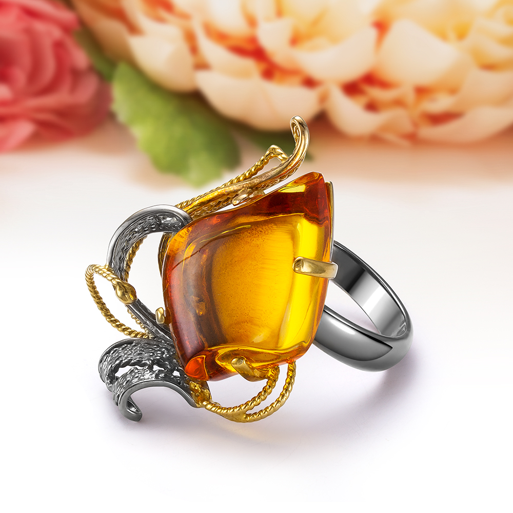 Кольца с королевским янтарем