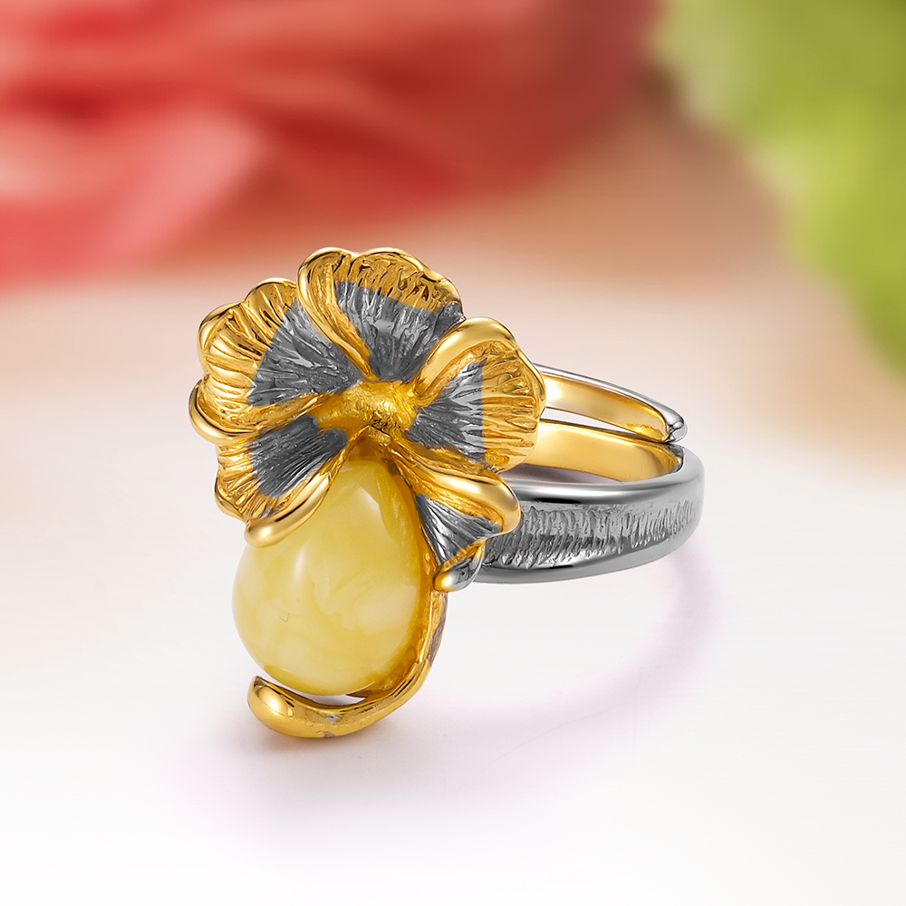 Кольцо "Диор" из серебра 925 пробы с лимонным балтийским янтарем
