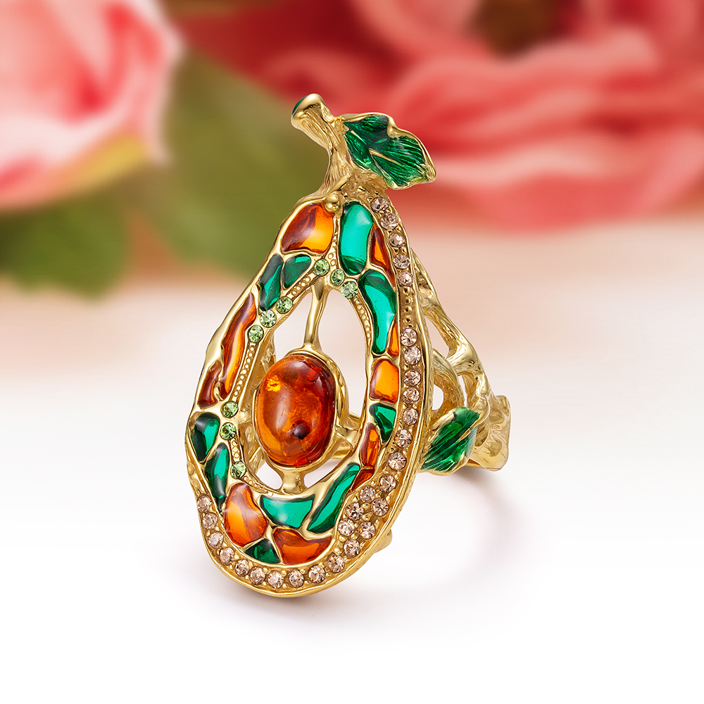 Кольцо "Фаберже" из серебра 925 пробы с балтийским янтарем "микс"