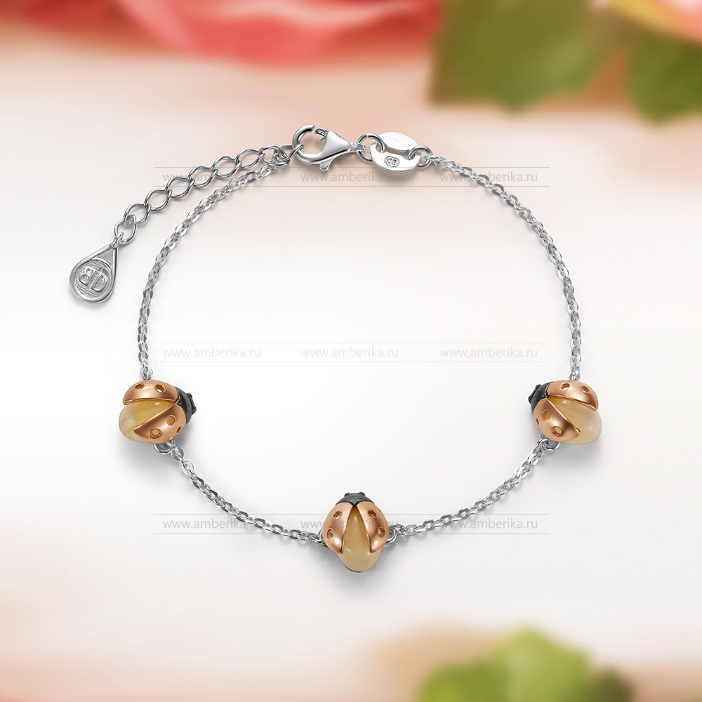 Браслет из серебра 925 пробы с лимонным природным балтийским янтарем, артикул 2168