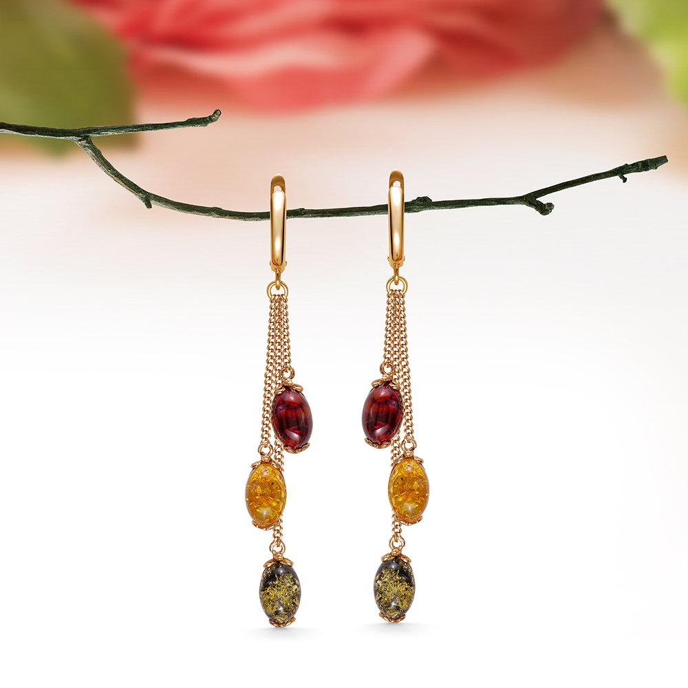 Браслет "Фаберже" в серебре с позолотой из балтийского янтаря "микс", артикул 11274