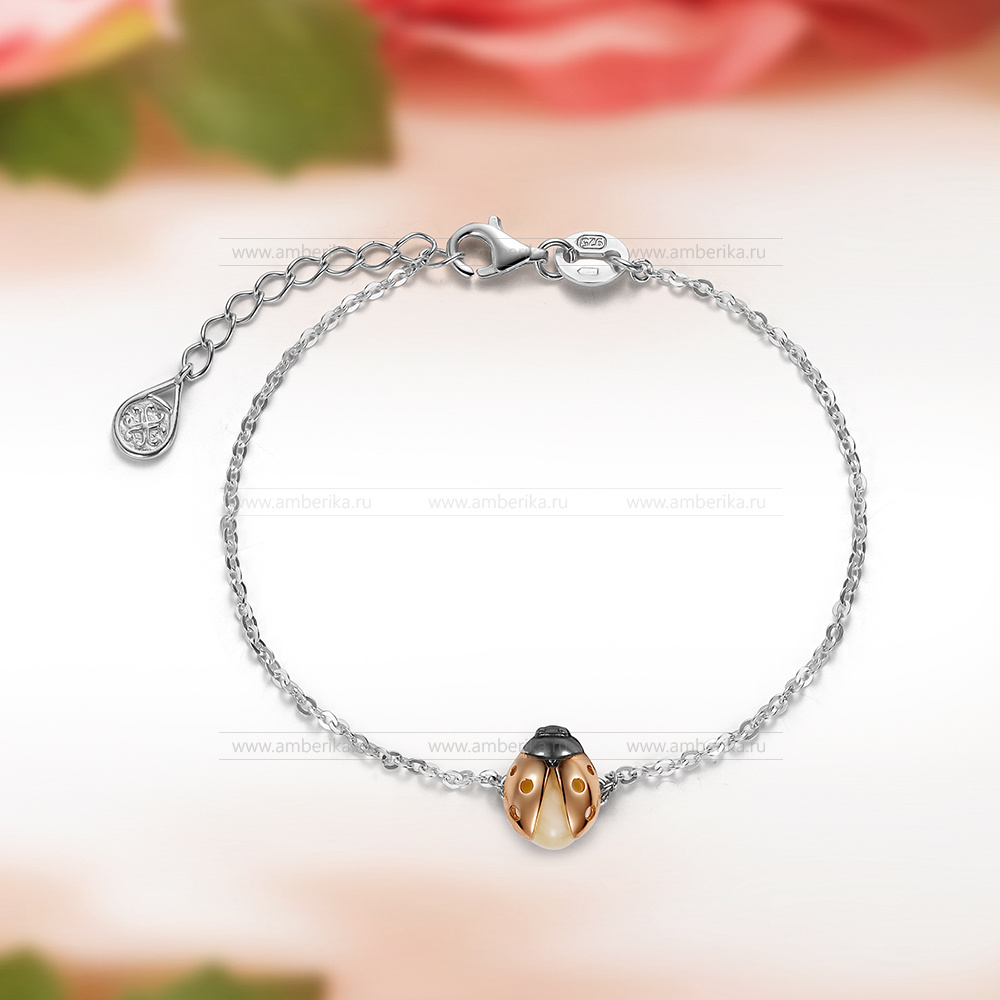 Браслет из серебра 925 пробы с лимонным природным балтийским янтарем, артикул 11287