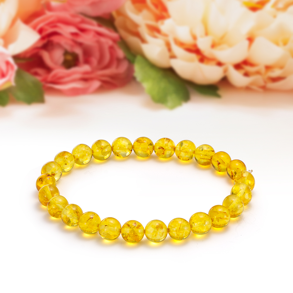 Браслет классический из золотистого природного Балтийского янтаря, артикул 10936