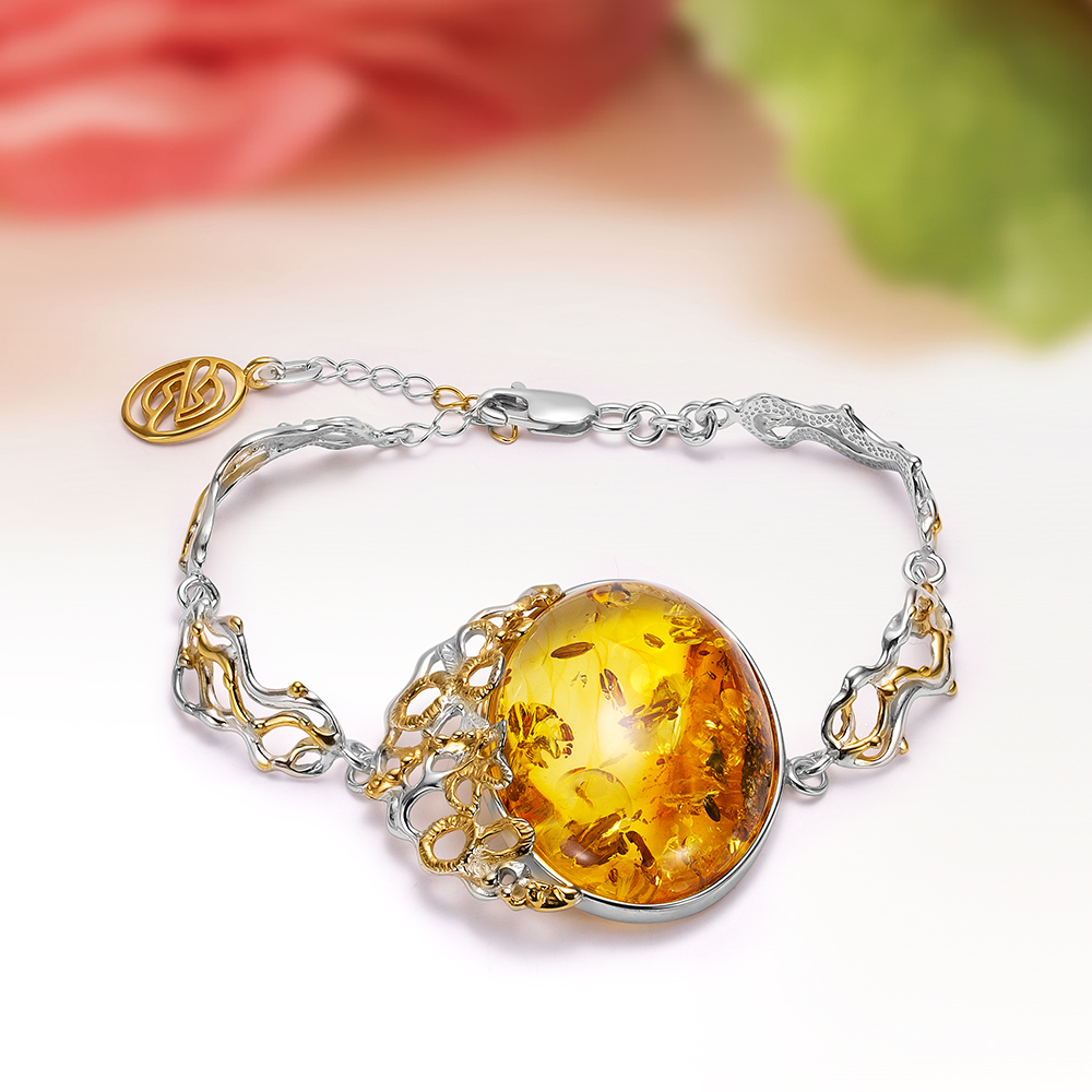 Браслеты из серебра с янтарем