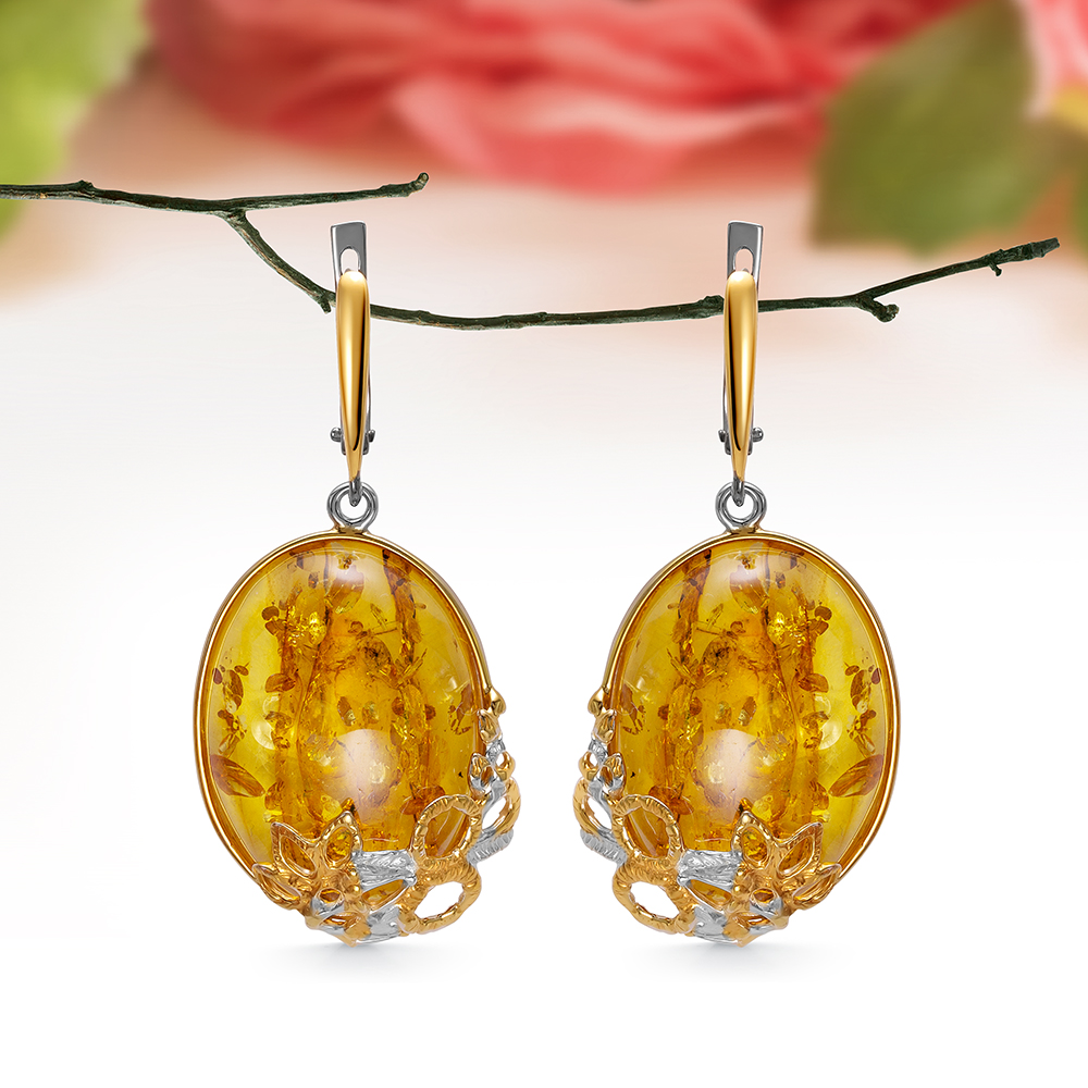 • Серьги с королевским янтарем