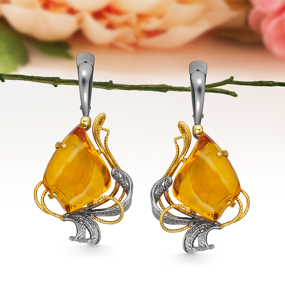 Браслет силиконовый с природным Балтийским янтарем, артикул 10930