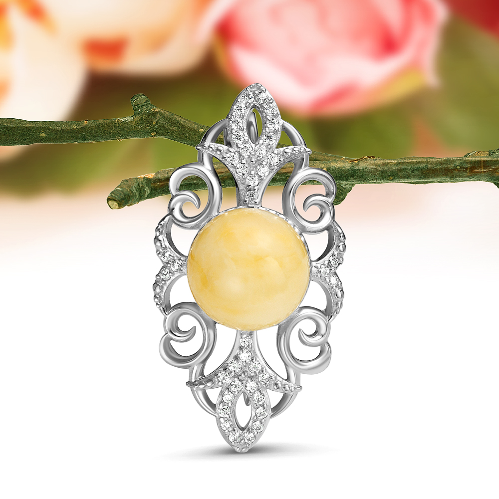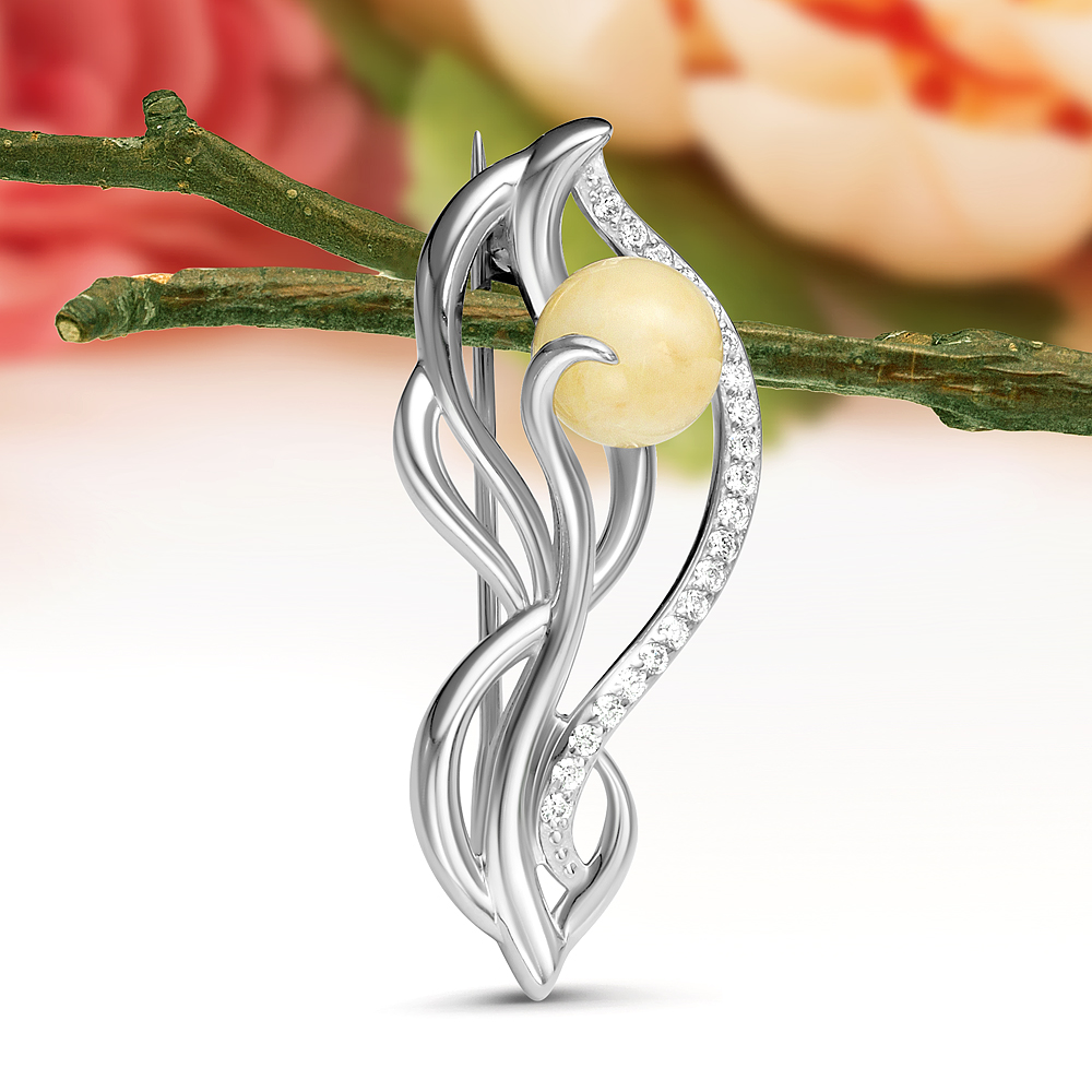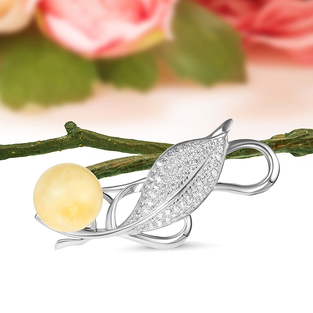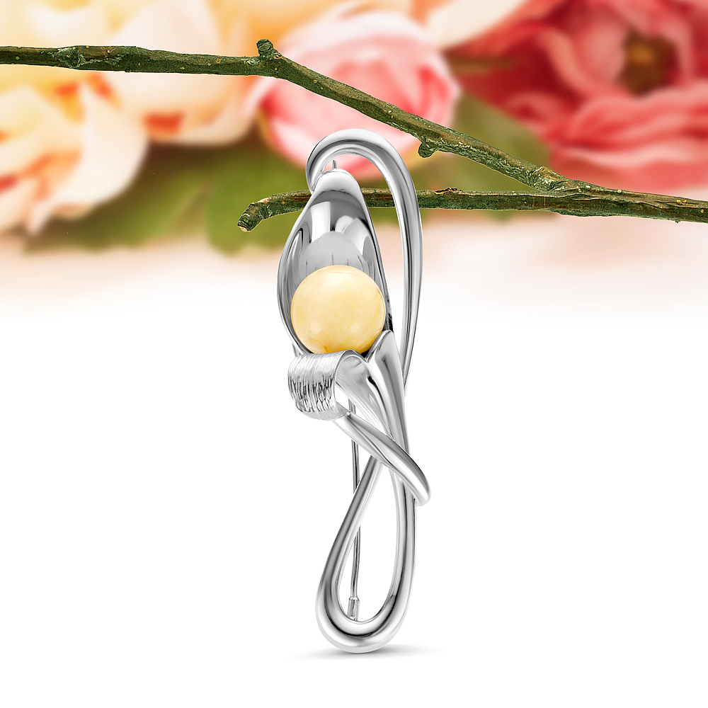 Брошь из серебра 925 пробы с лимонным натуральным балтийским янтарем, артикул 12471