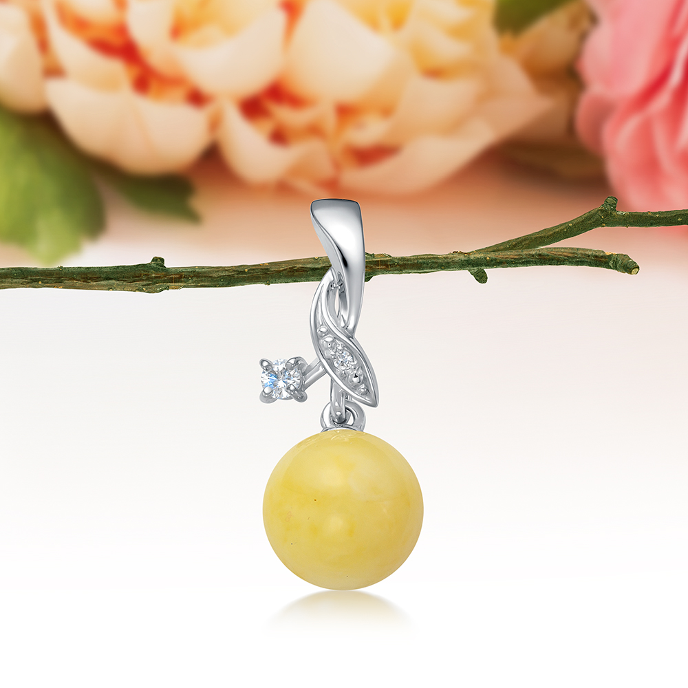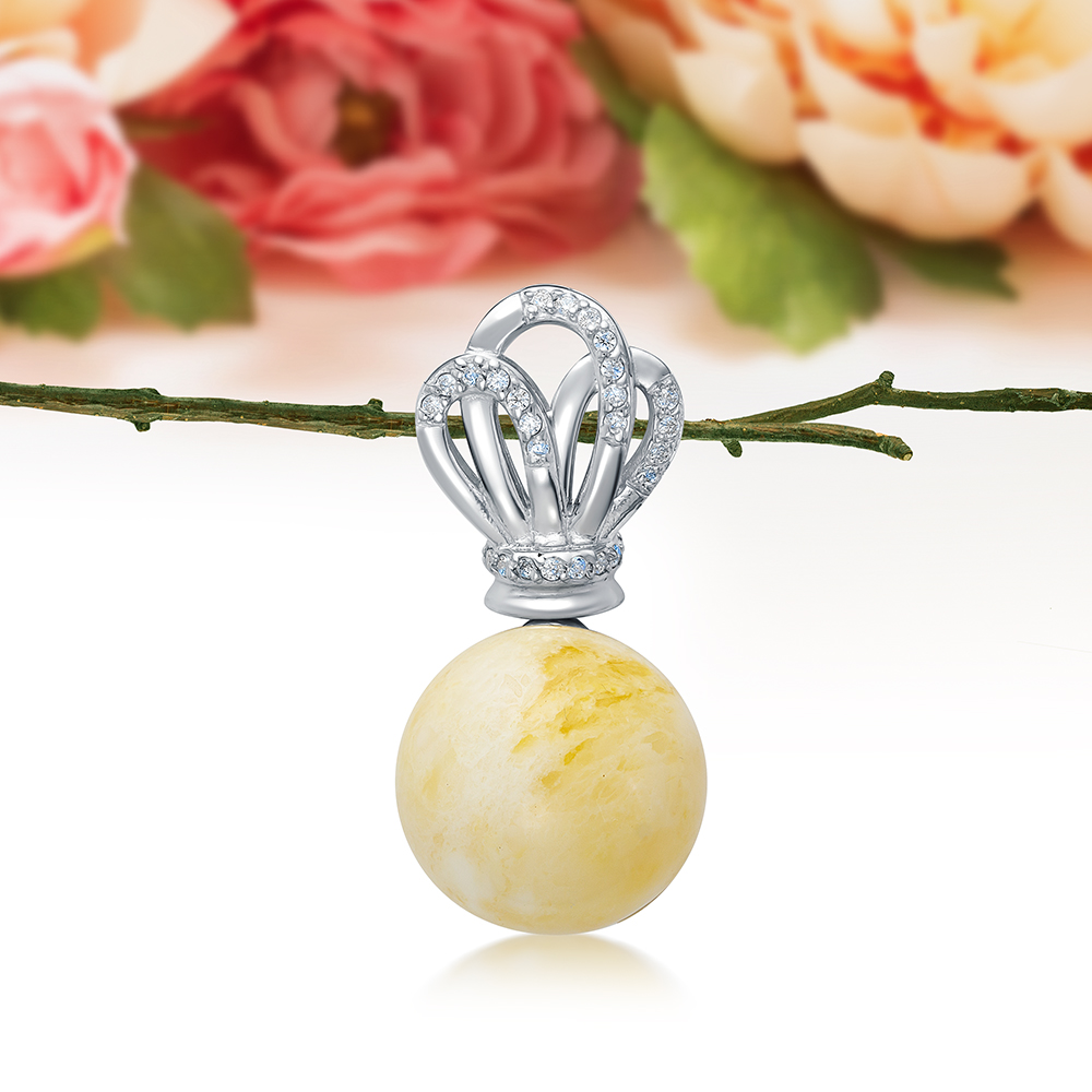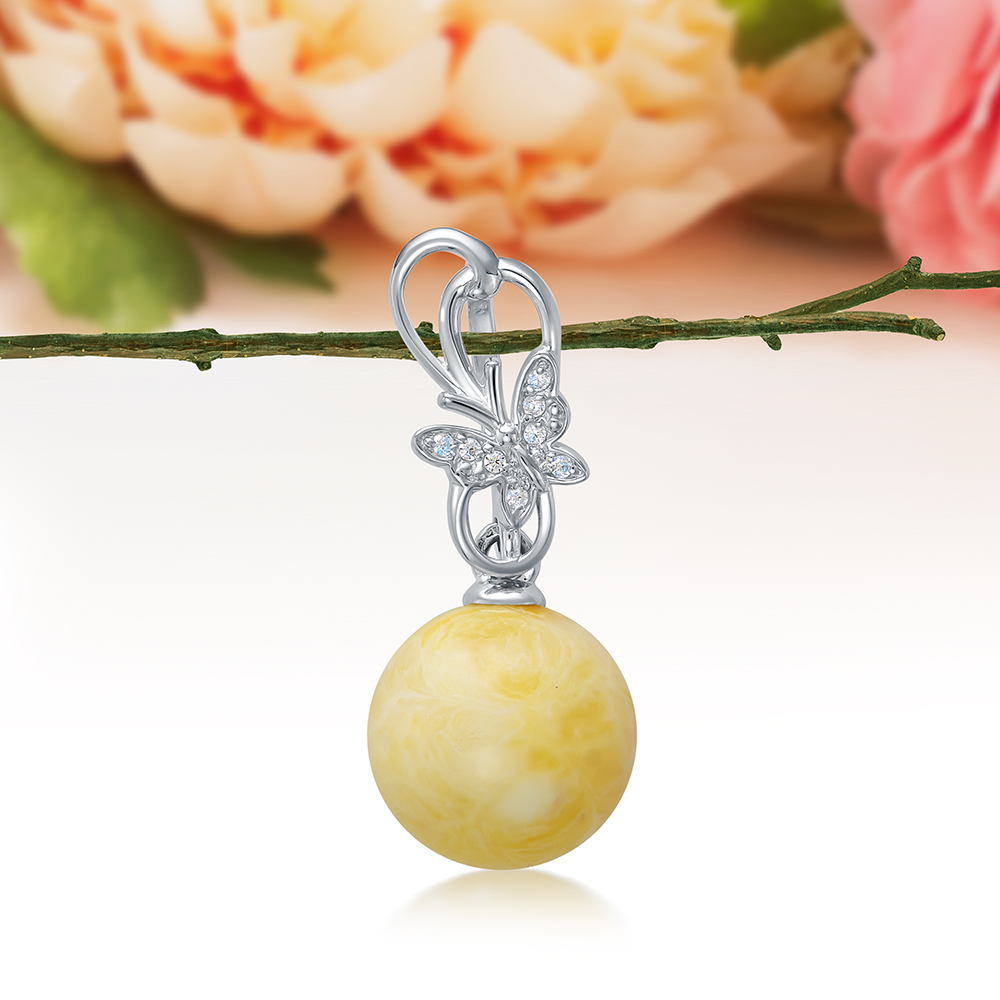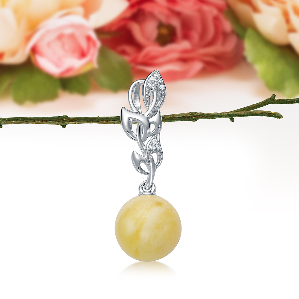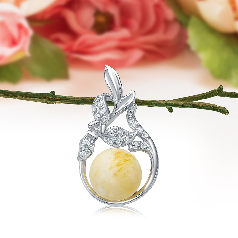 Брошь из серебра 925 пробы с лимонным натуральным балтийским янтарем, артикул 12471