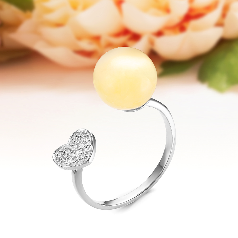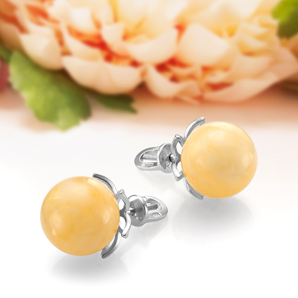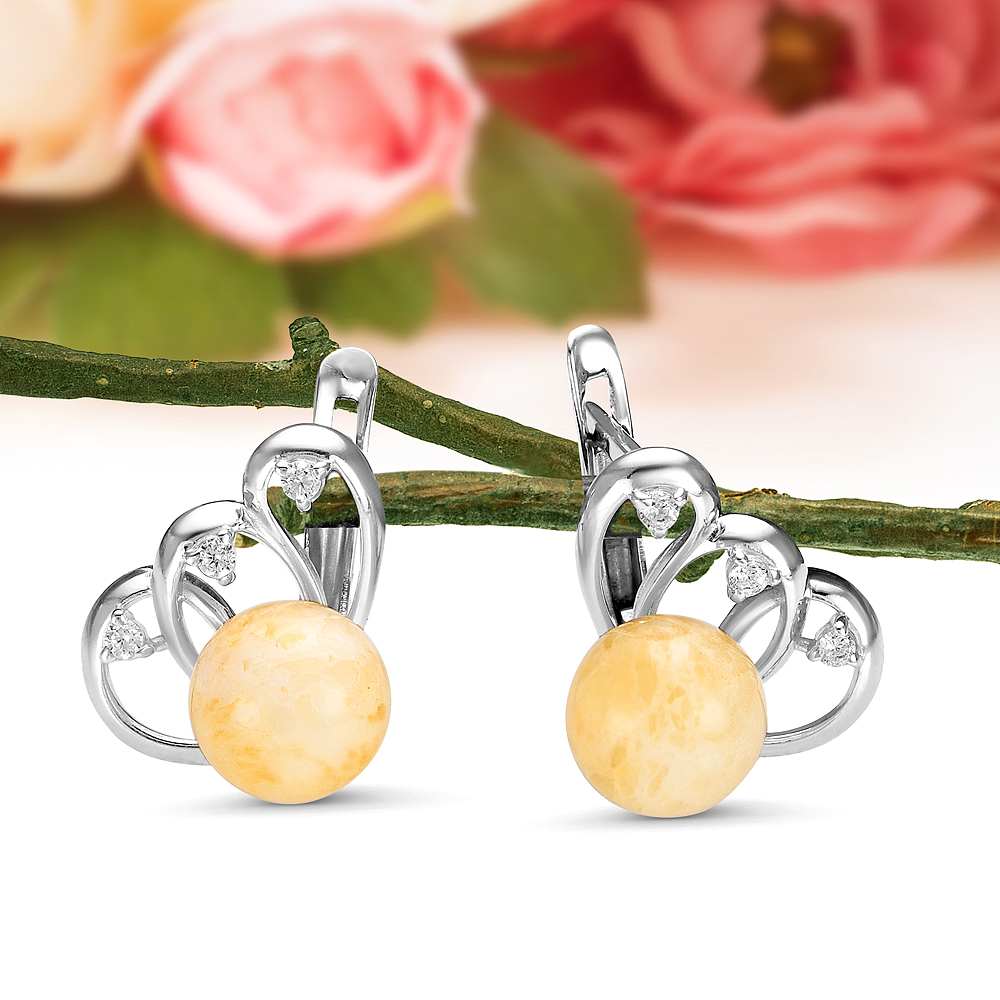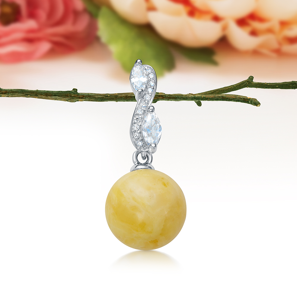 Брошь из серебра 925 пробы с лимонным натуральным балтийским янтарем, артикул 12471