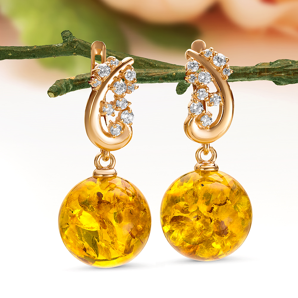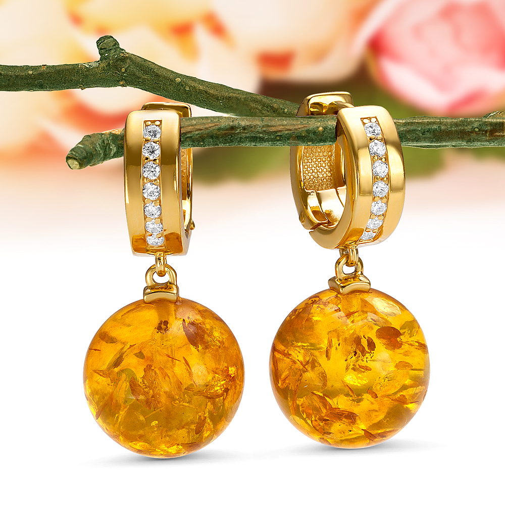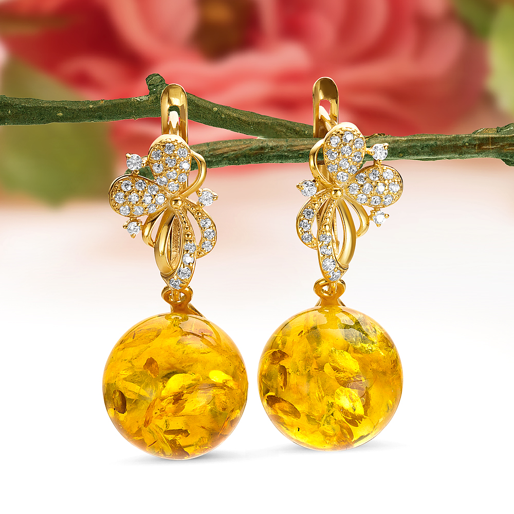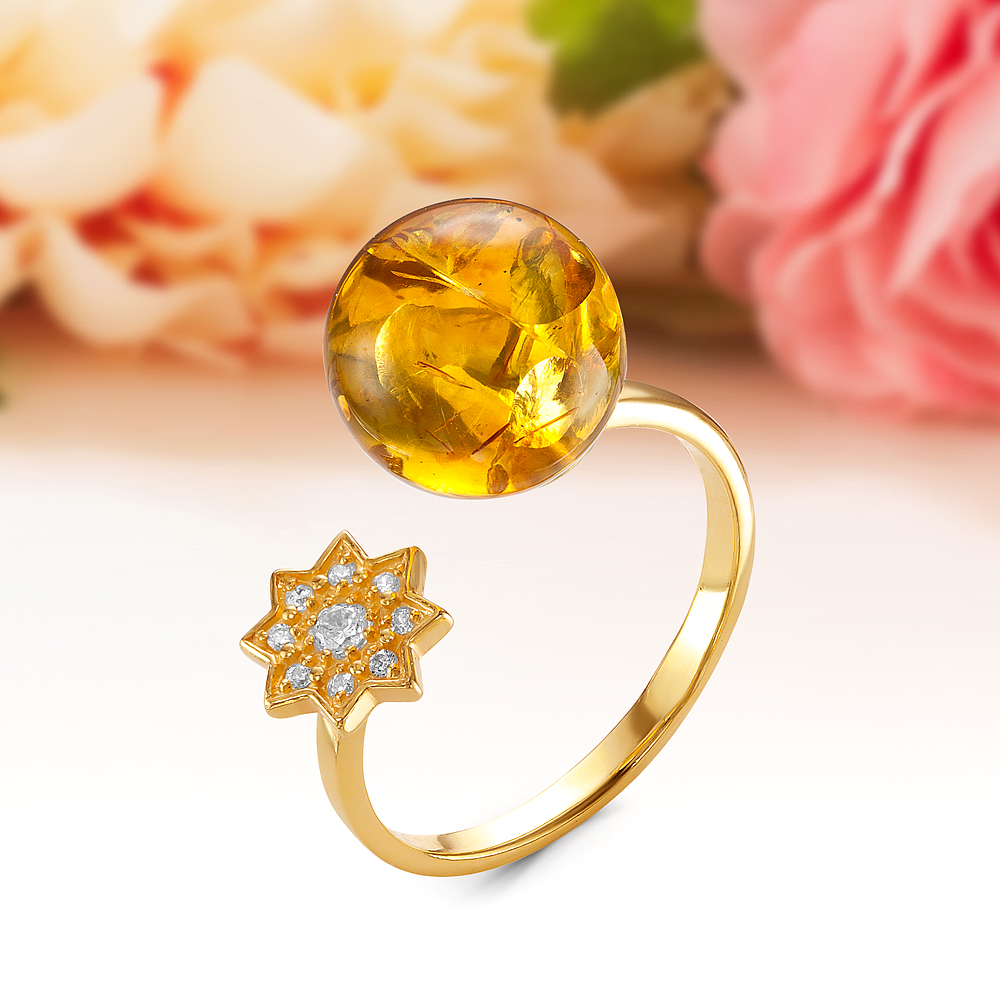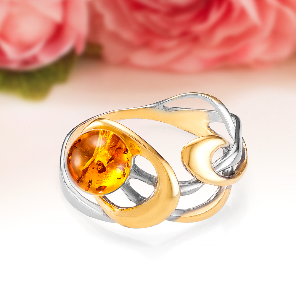 Кольцо из серебра 925 пробы с золотистым балтийским янтарем, артикул 11571