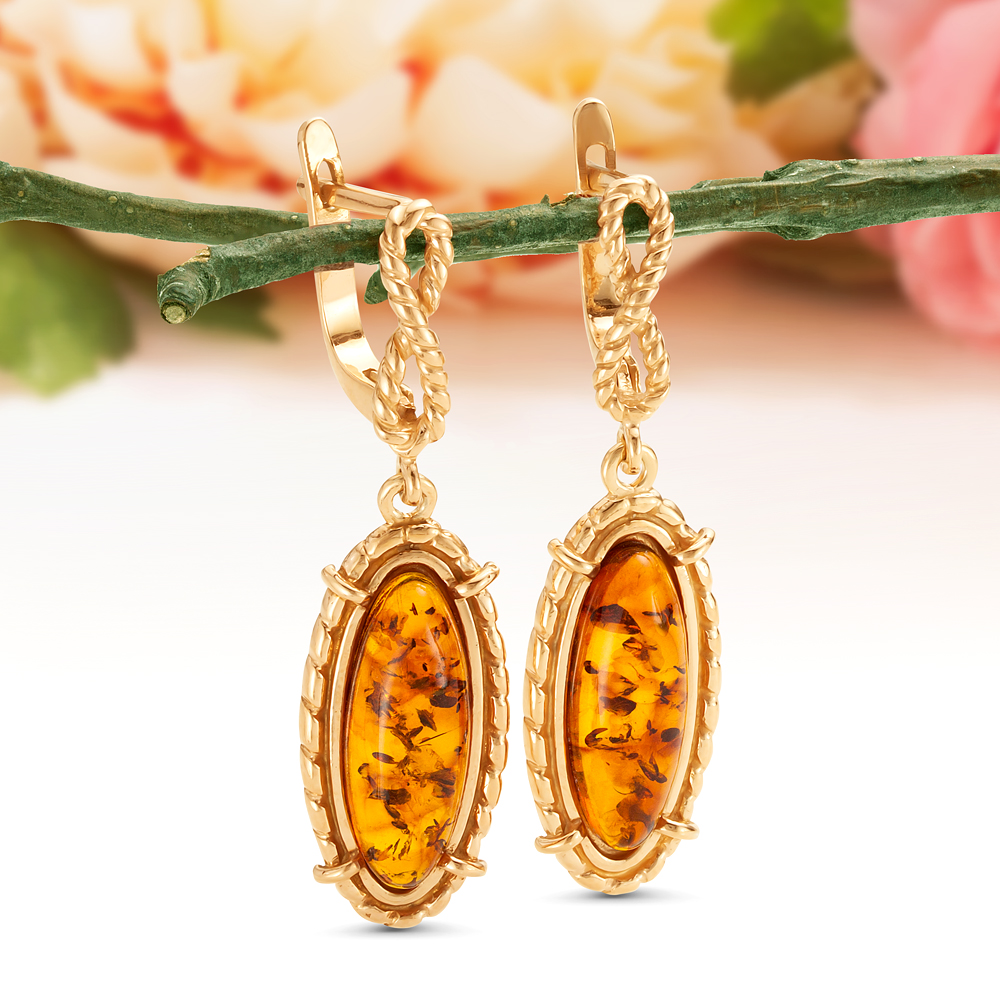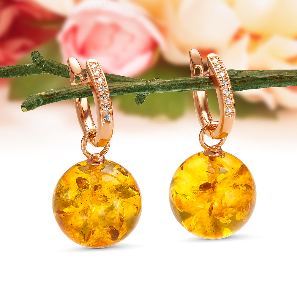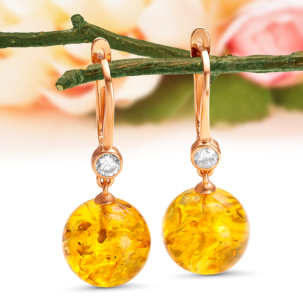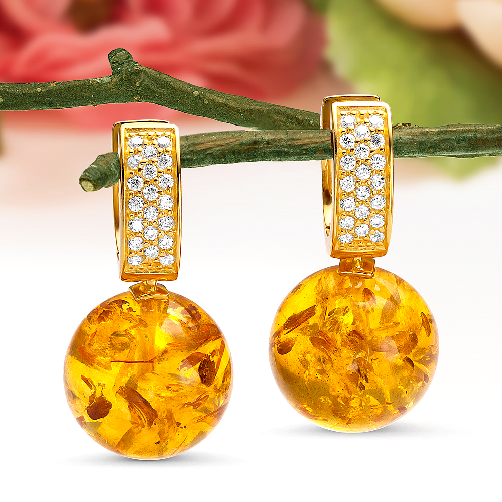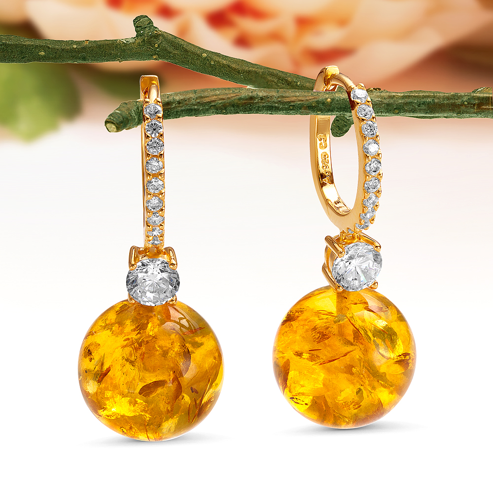 Кольцо из серебра 925 пробы с золотистым балтийским янтарем, артикул 11571