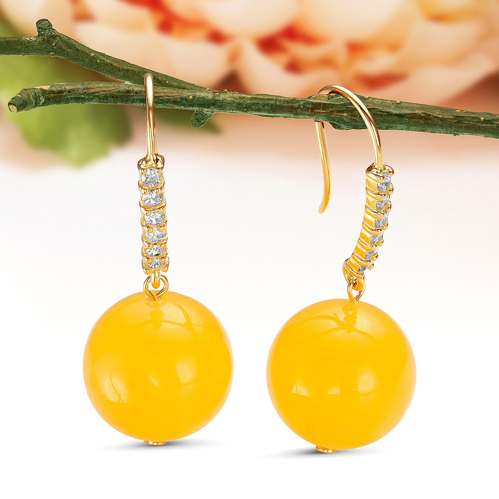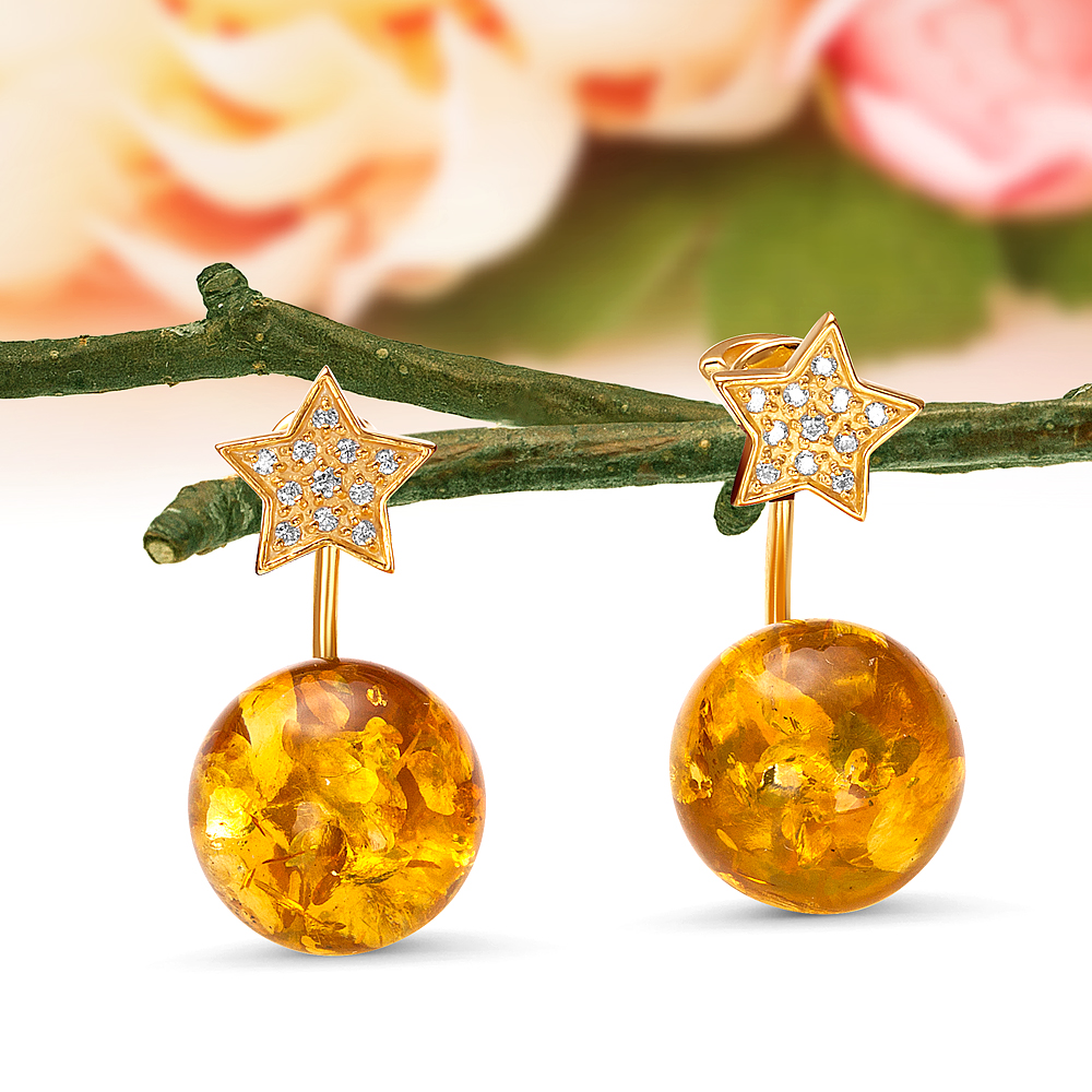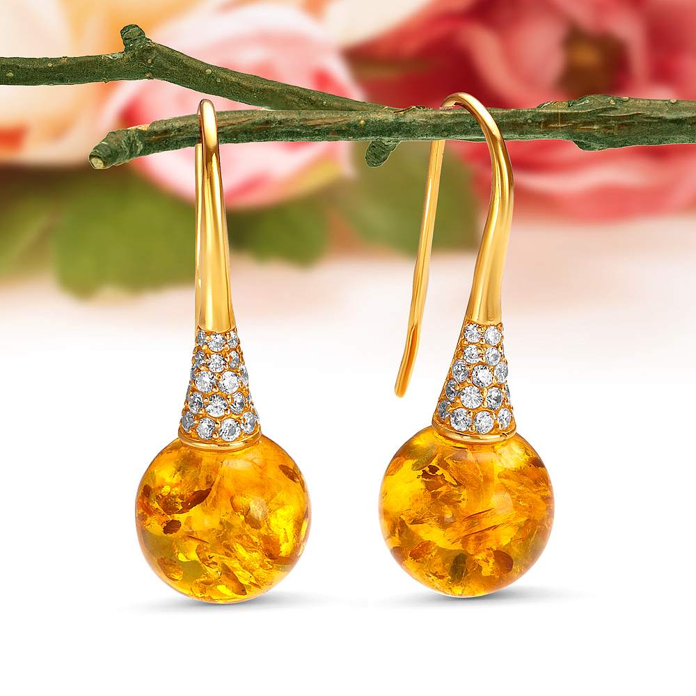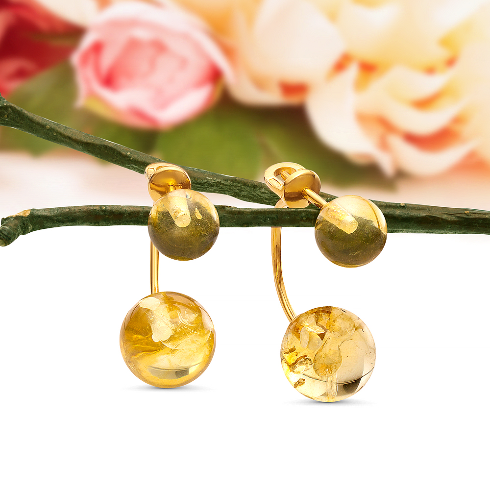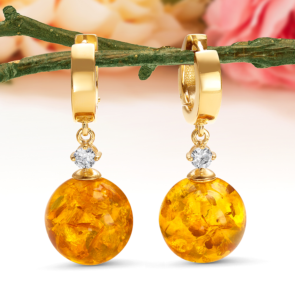 Кольцо из серебра 925 пробы с золотистым балтийским янтарем, артикул 11571