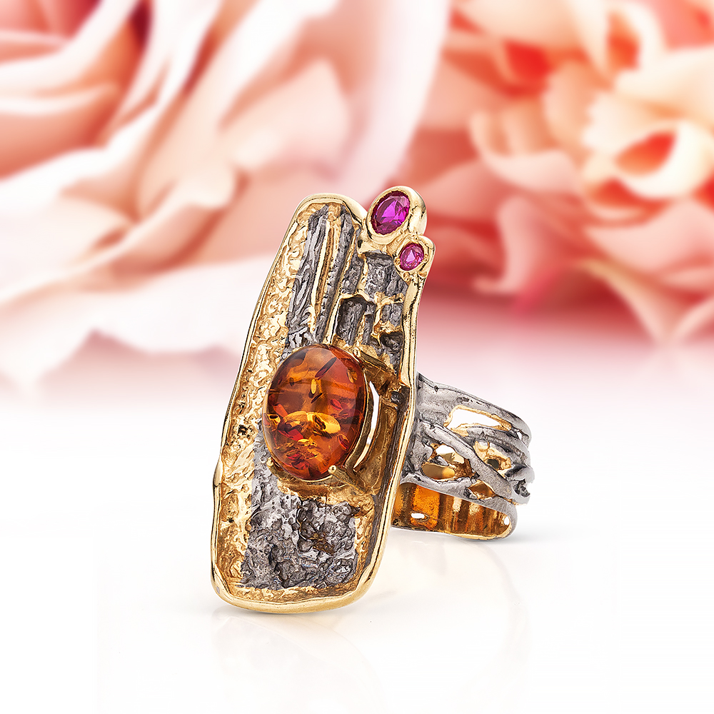 • Кольца с королевским янтарем