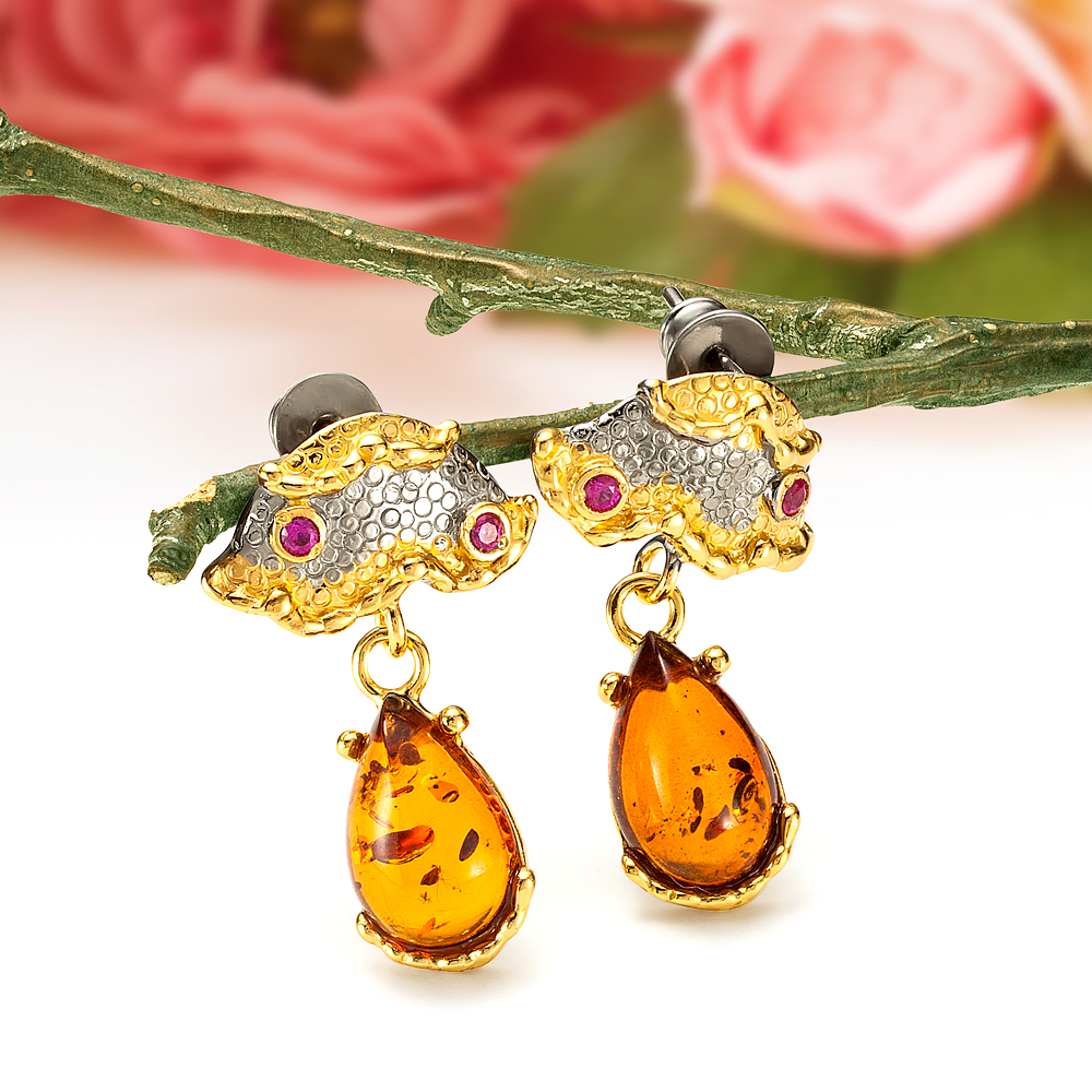 • Серьги с королевским янтарем