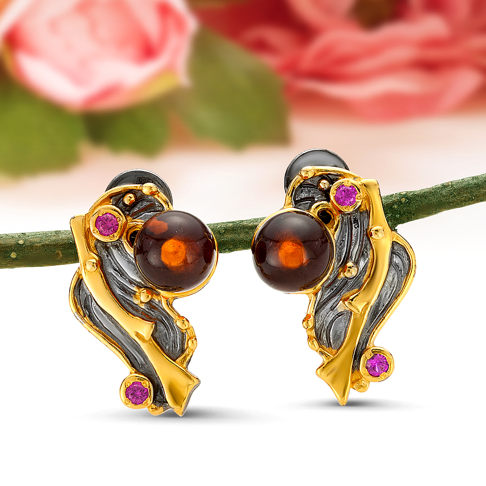 • Серебряные украшения в позолоте с янтарем