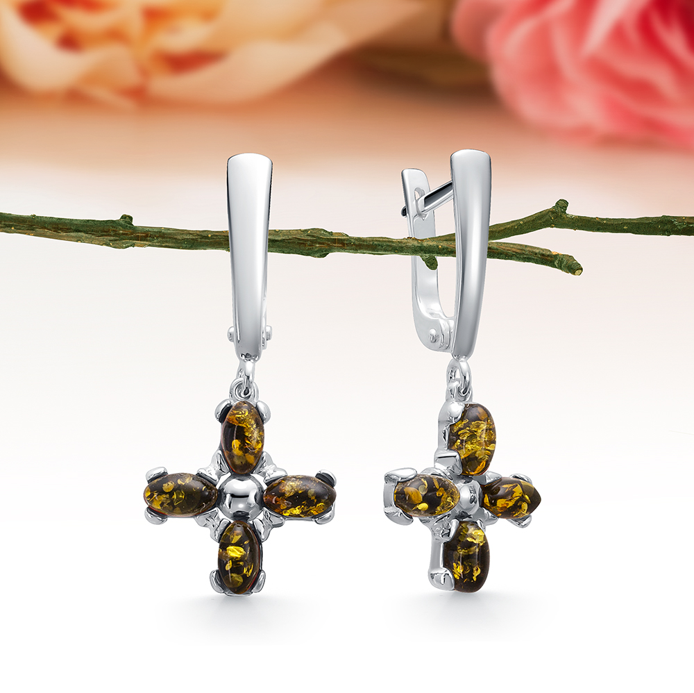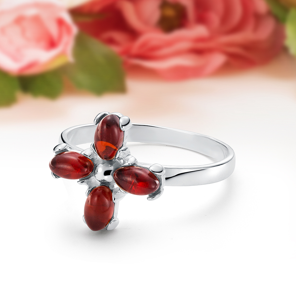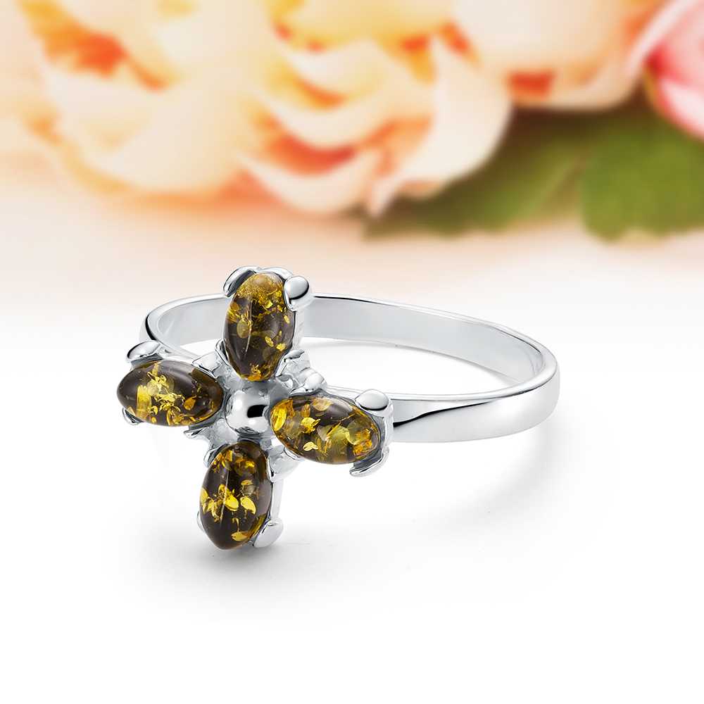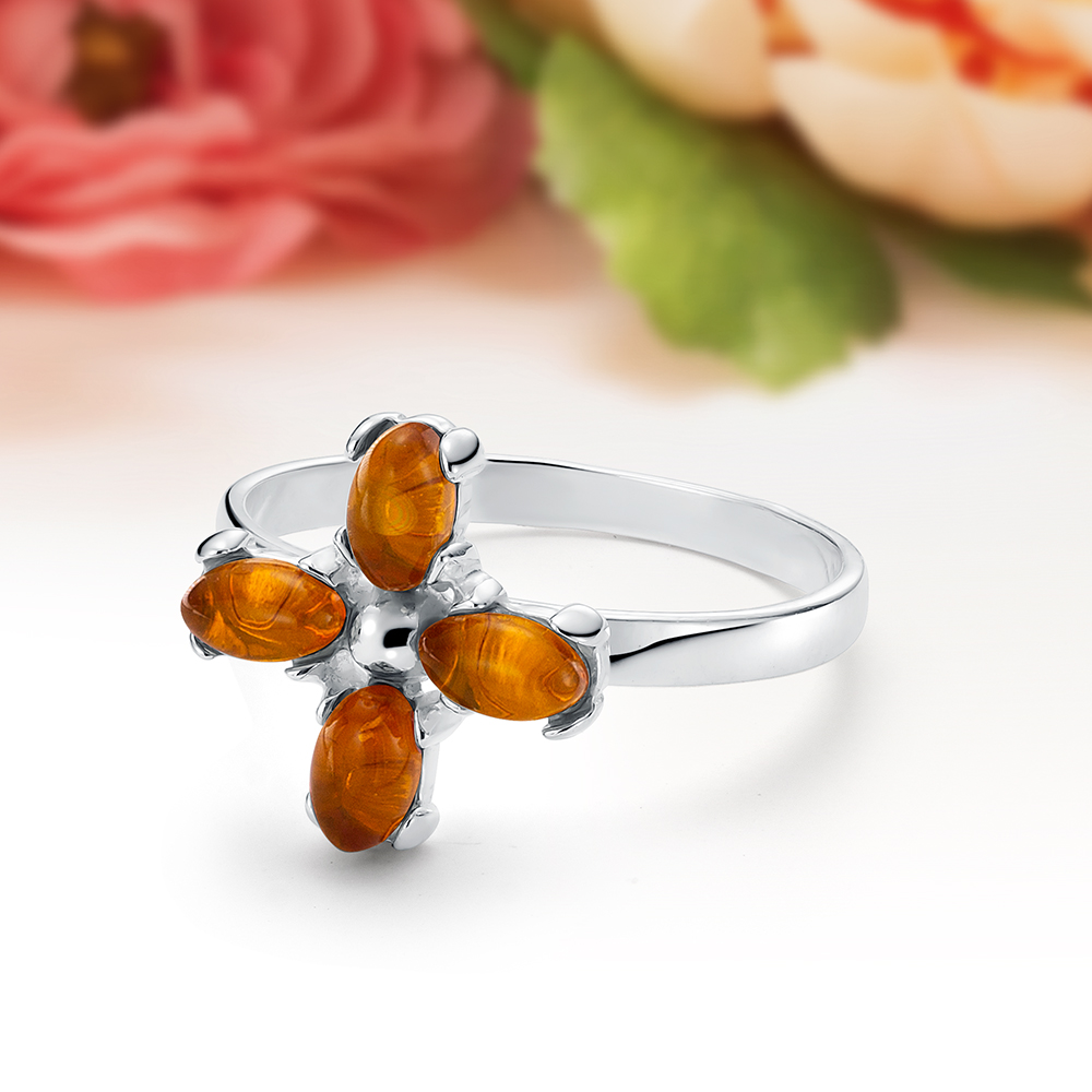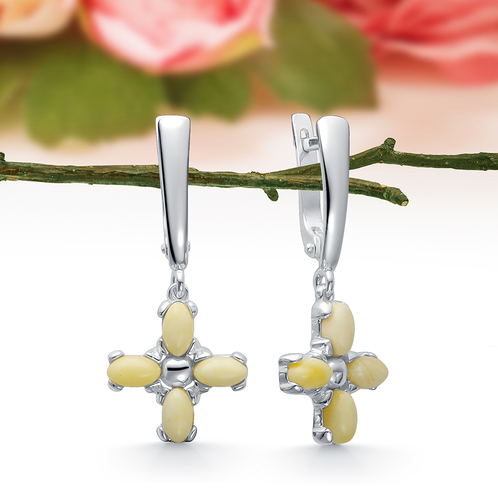 Кольцо из серебра 925 пробы с белым природным балтийским янтарем, артикул 11054